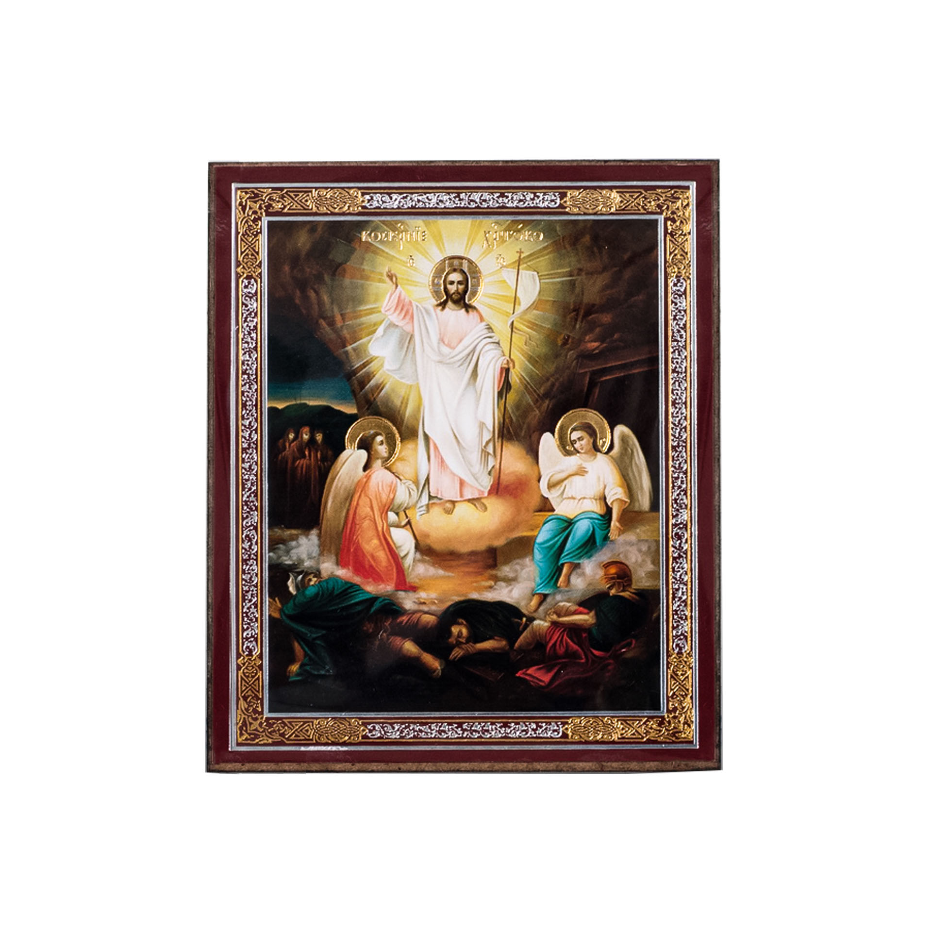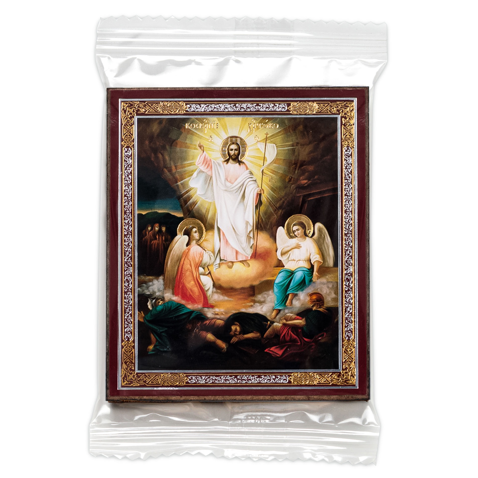 Икона на деревянном планшете 6х9 двойное тиснение, аннотация, упаковка Воскресение Христово 56