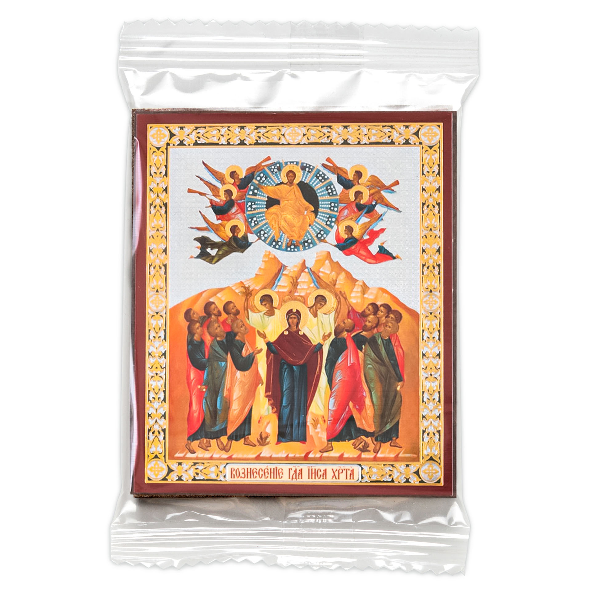 Икона на деревянном планшете 6х9 двойное тиснение, аннотация, упаковка Вознесение Господне