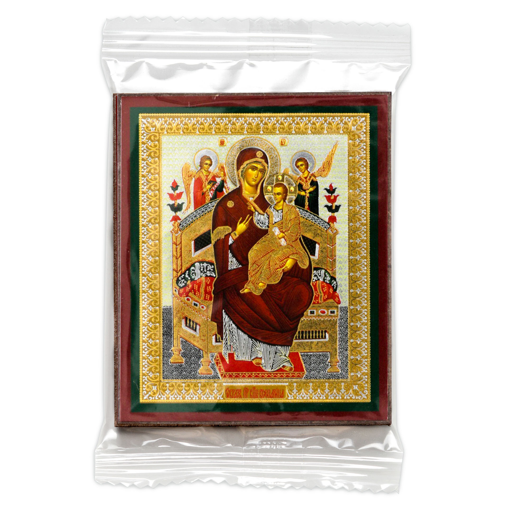 Икона на деревянном планшете 6х9 двойное тиснение, аннотация, упаковка Всецарица