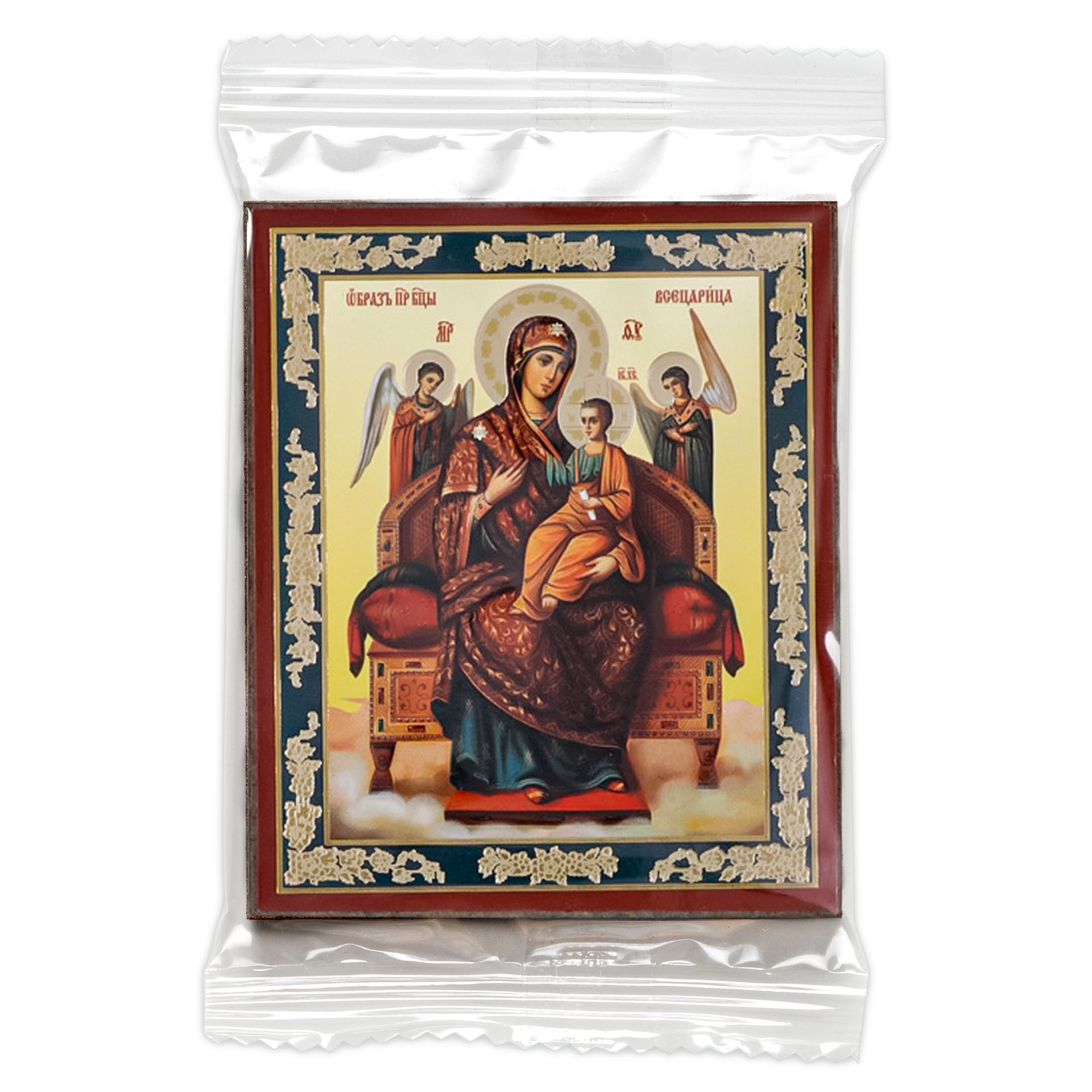 Икона на деревянном планшете 6х9 двойное тиснение, аннотация, упаковка Всецарица 2