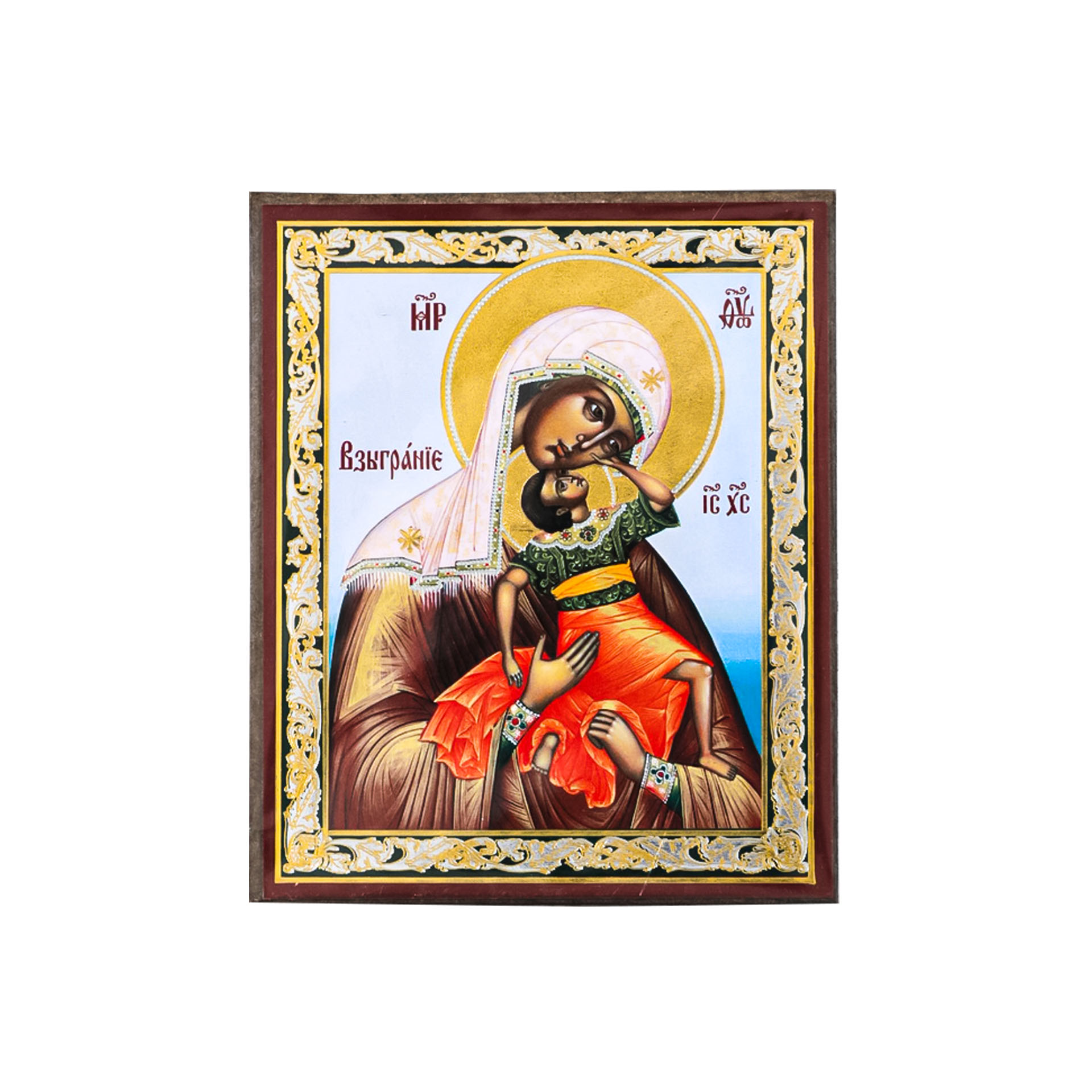 Икона на деревянном планшете 6х9 двойное тиснение, аннотация, упаковка Взыграние Младенца