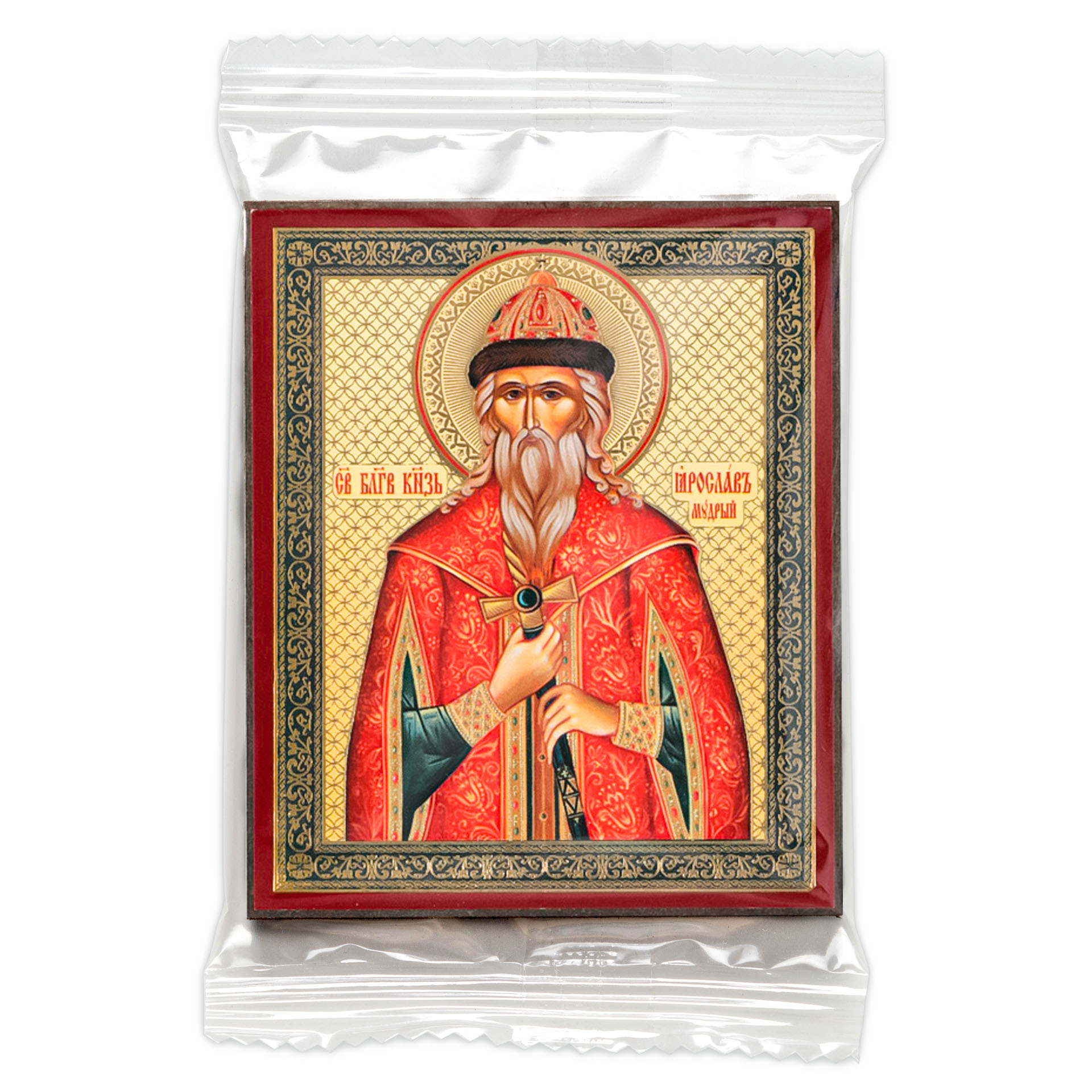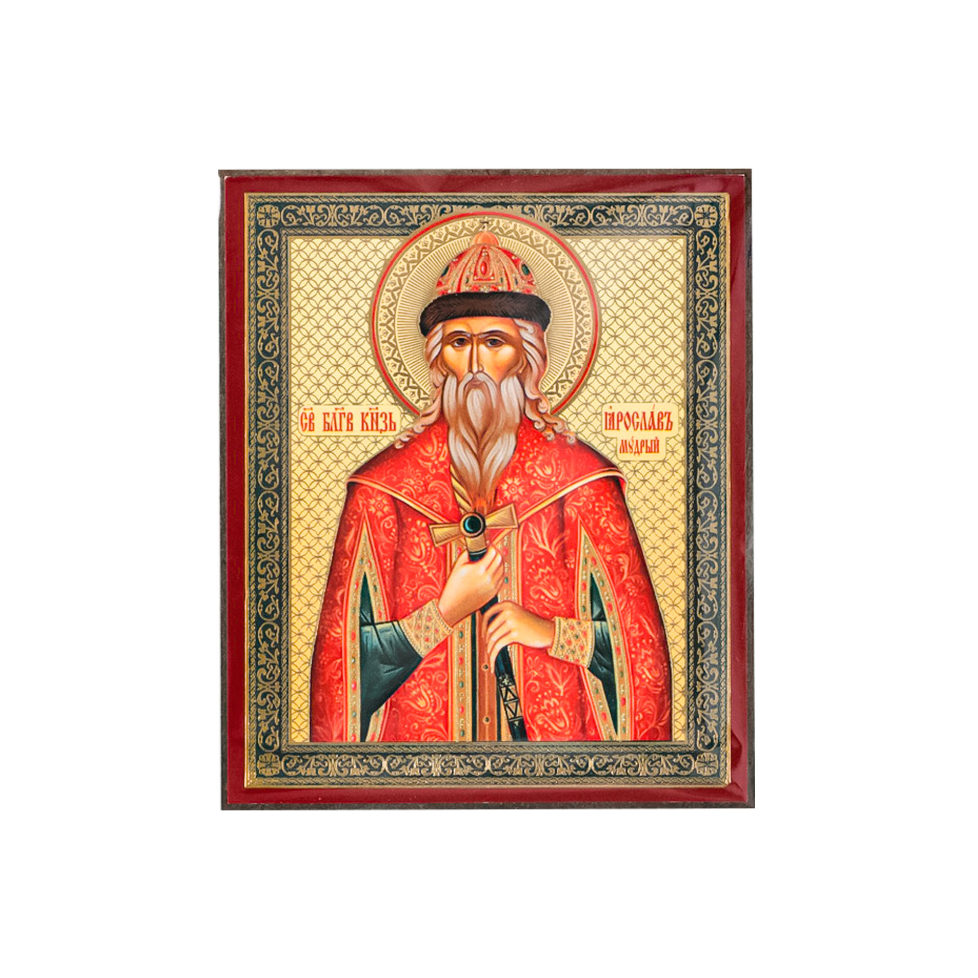 Икона на деревянном планшете 6х9 двойное тиснение, аннотация, упаковка Ярослав Мудрый