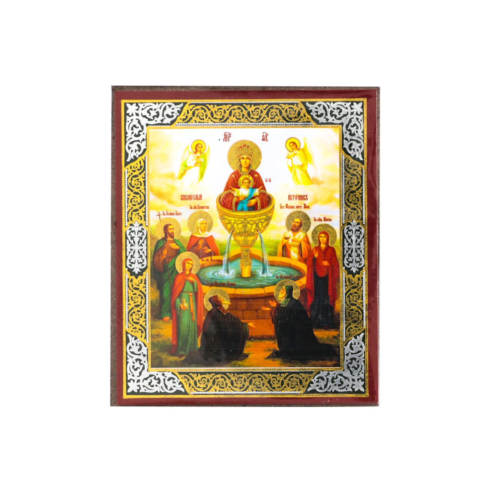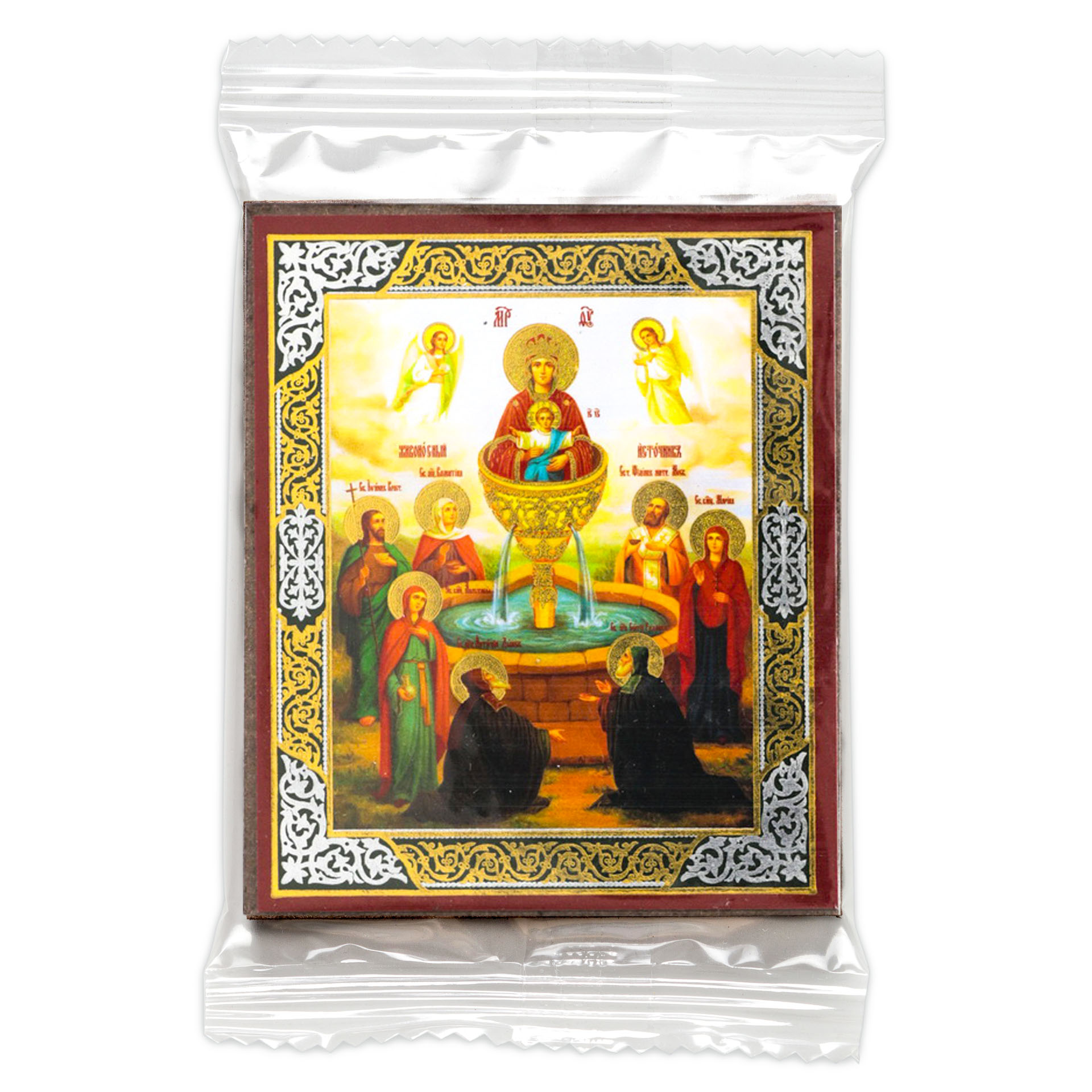 Икона на деревянном планшете 6х9 двойное тиснение, аннотация, упаковка Живоносный Источник 3