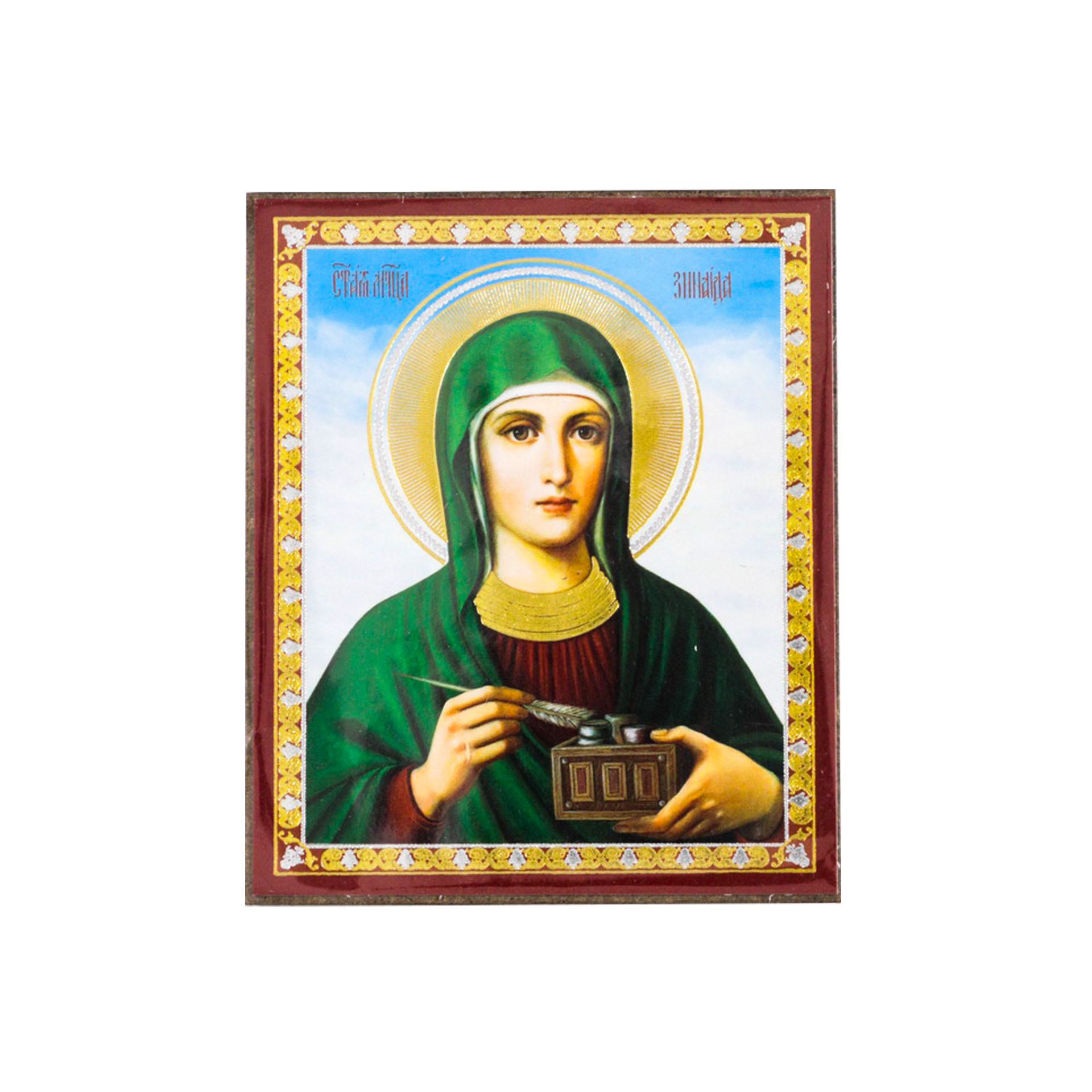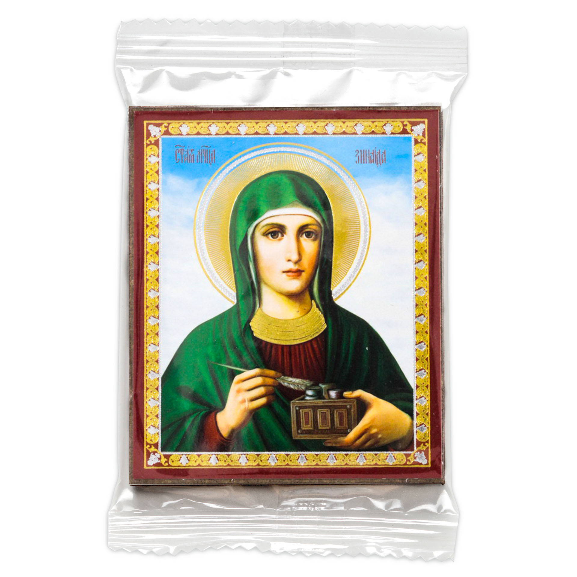 Икона на деревянном планшете 6х9 двойное тиснение, аннотация, упаковка Зинаида 2
