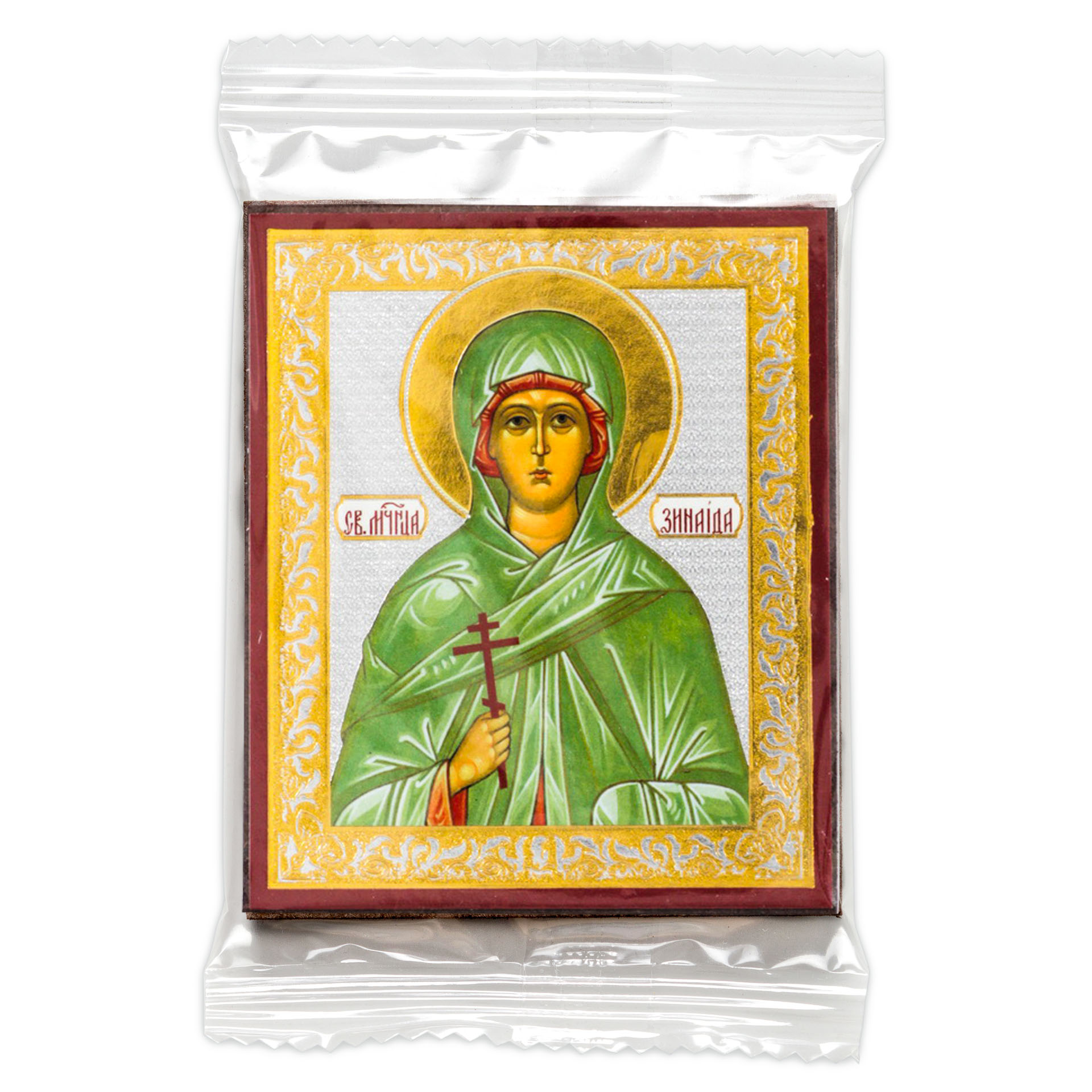 Икона на деревянном планшете 6х9 двойное тиснение, аннотация, упаковка Зинаида Тарсийская, мц.