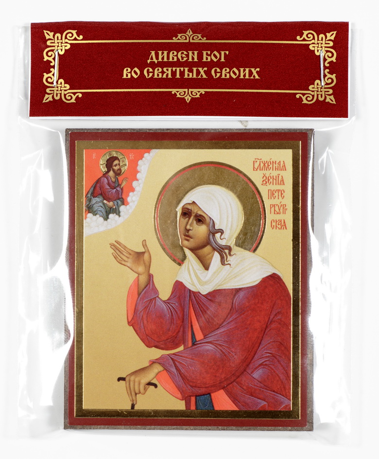 Икона на деревянном планшете 6х9 тиснение, аннотация, упаковка Ксения Петербургская, блж. (6)