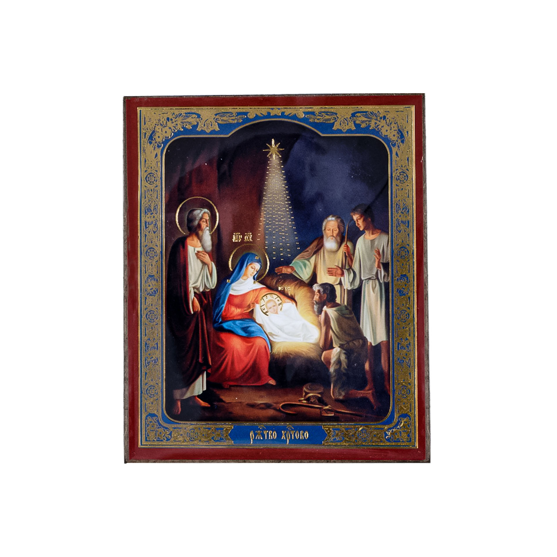Икона на деревянном планшете 6х9 тиснение, аннотация, упаковка Рождество Христово 21