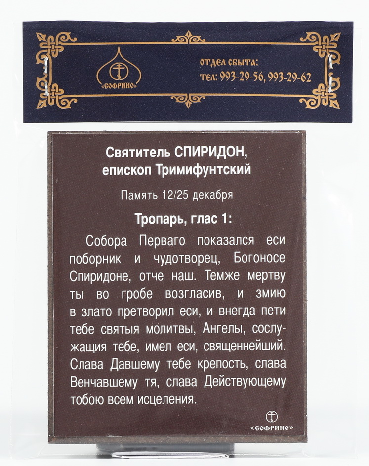 Икона на деревянном планшете 6х9 тиснение, аннотация, упаковка Спиридон Тримифунтский 5