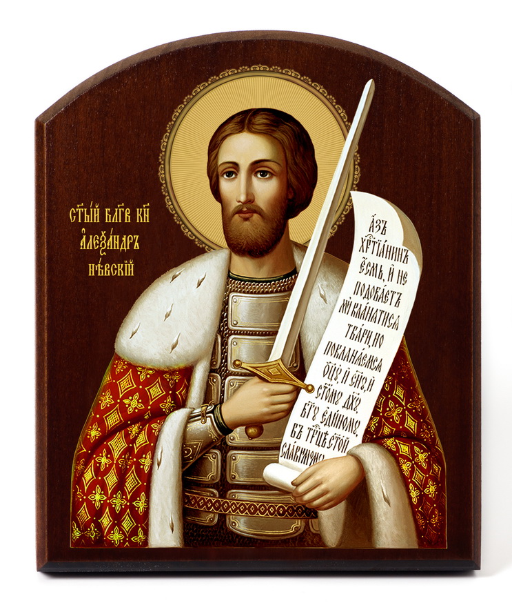 Икона на доске 10х12 объёмная печать, арочная, лак Александр Невский 2