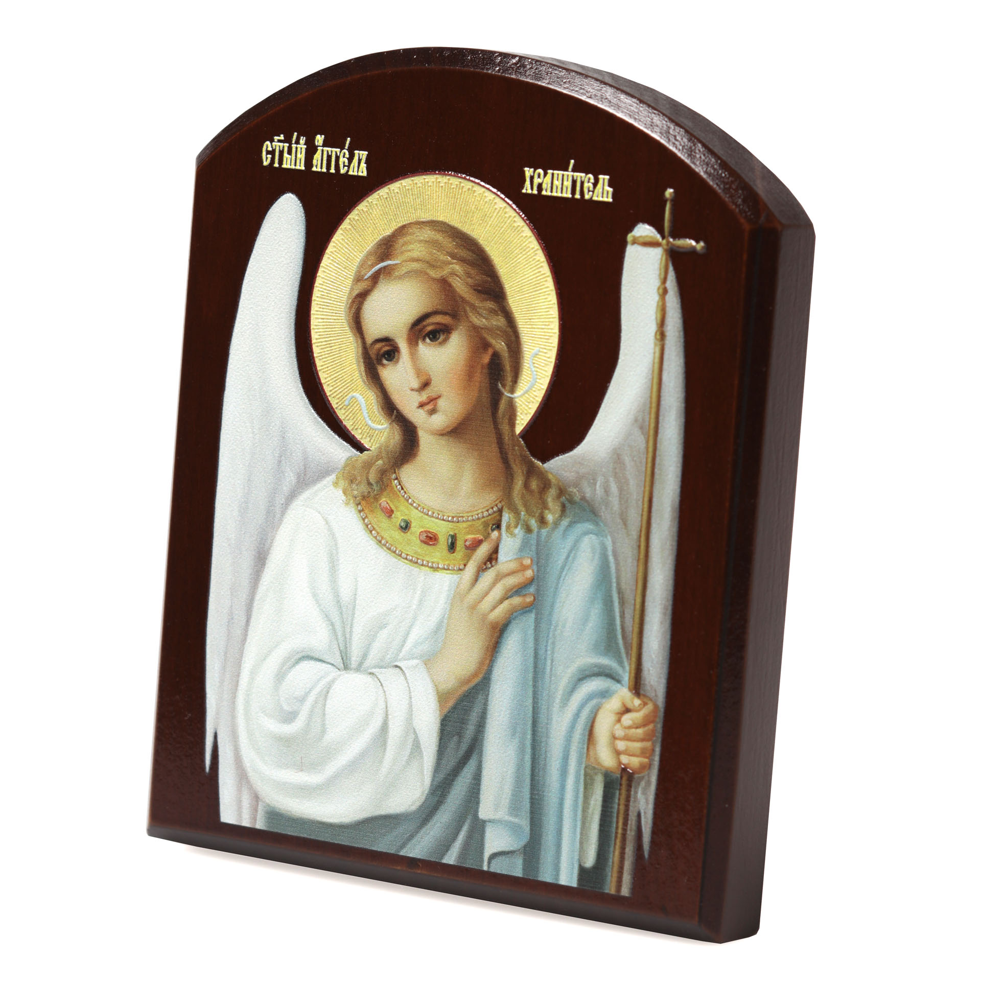 Икона на доске 10х12 объёмная печать, арочная, лак Ангел Хранитель 3