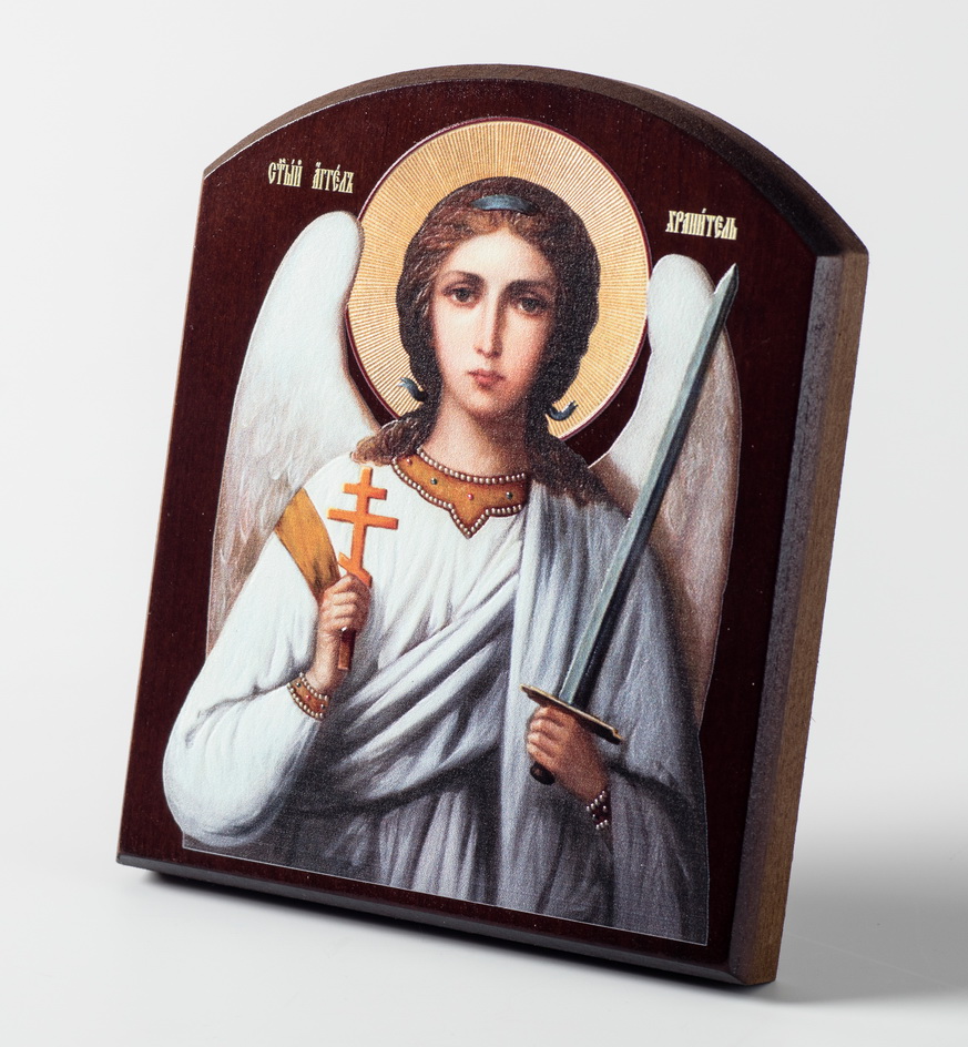 Икона на доске 10х12 объёмная печать, арочная, лак Ангел Хранитель