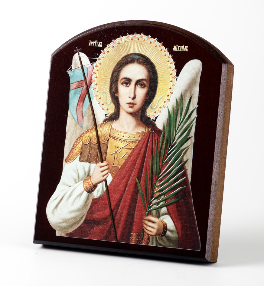 Икона на доске 10х12 объёмная печать, арочная, лак Архангел Михаил