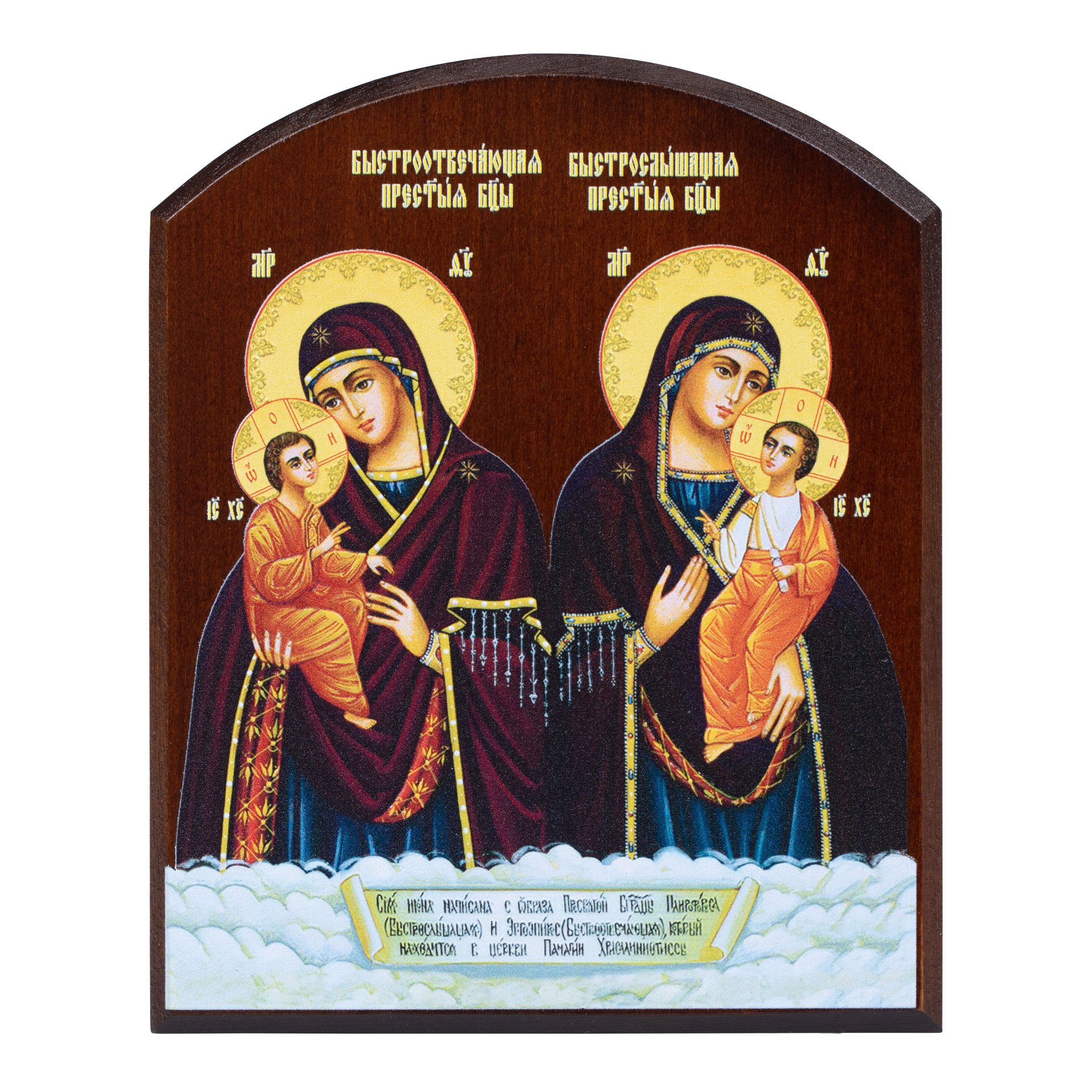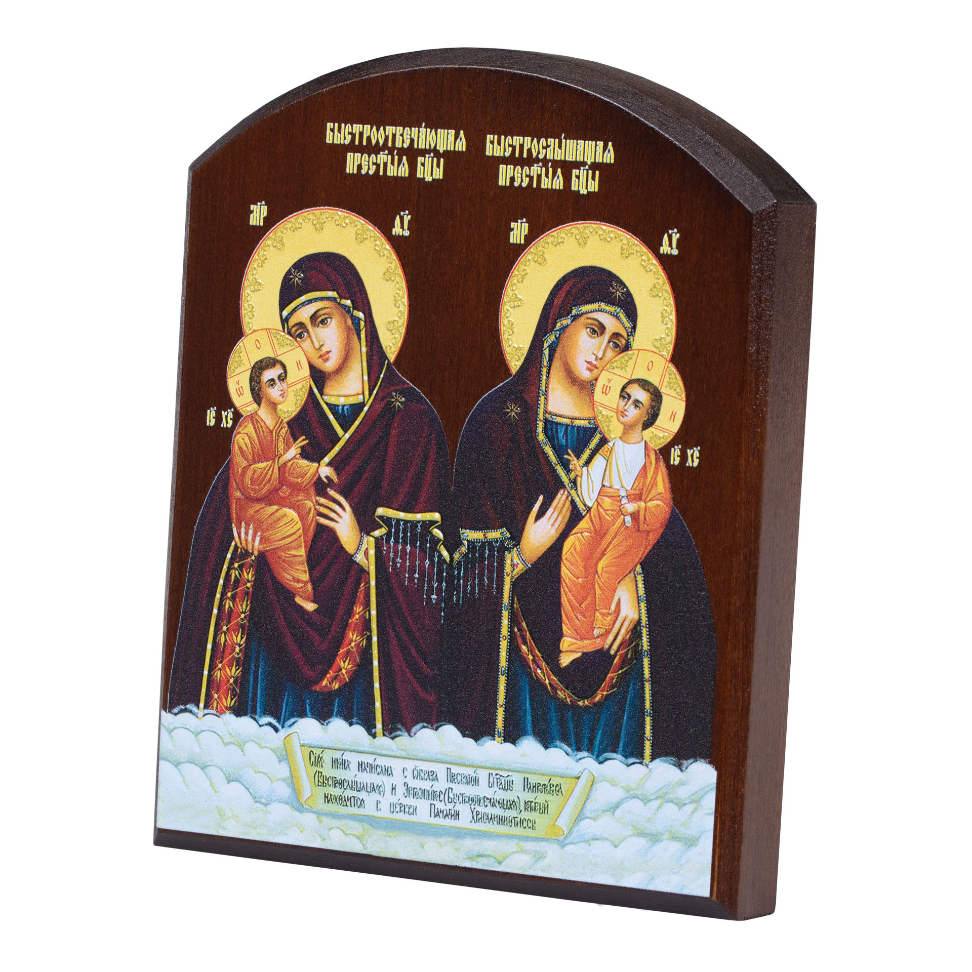 Икона на доске 10х12 объёмная печать, арочная, лак Быстрослышащая БМ и Быстроотвечающая БМ