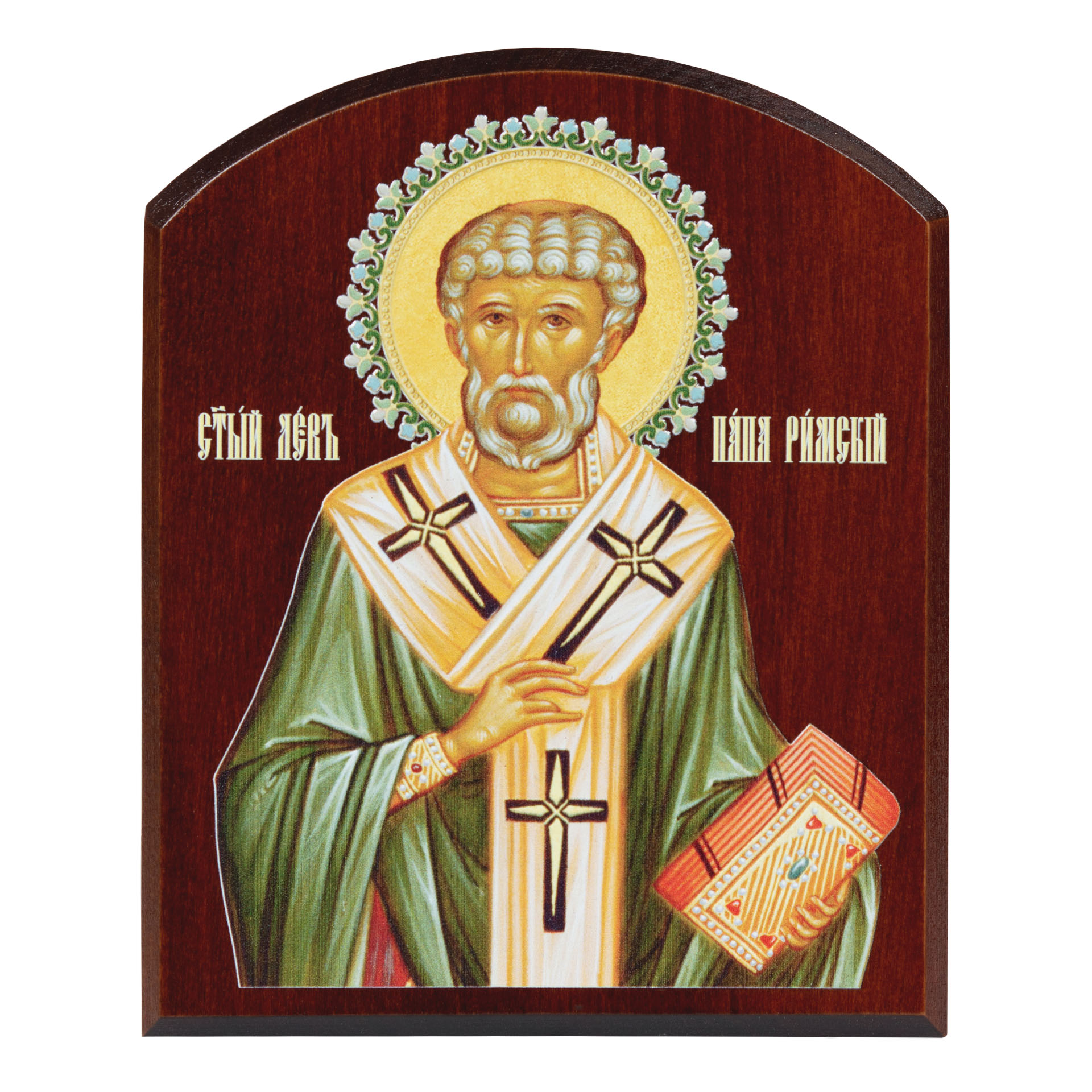 Икона на доске 10х12 объёмная печать, арочная, лак Лев папа Римский