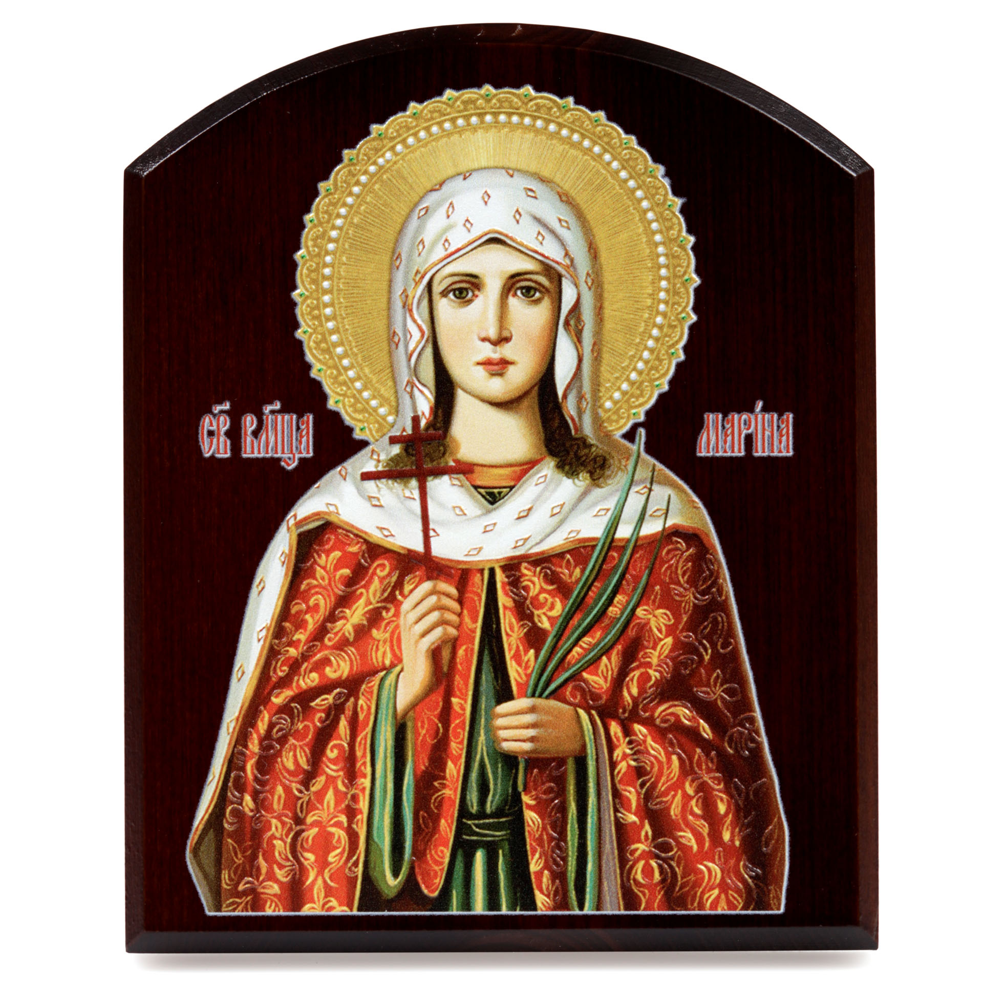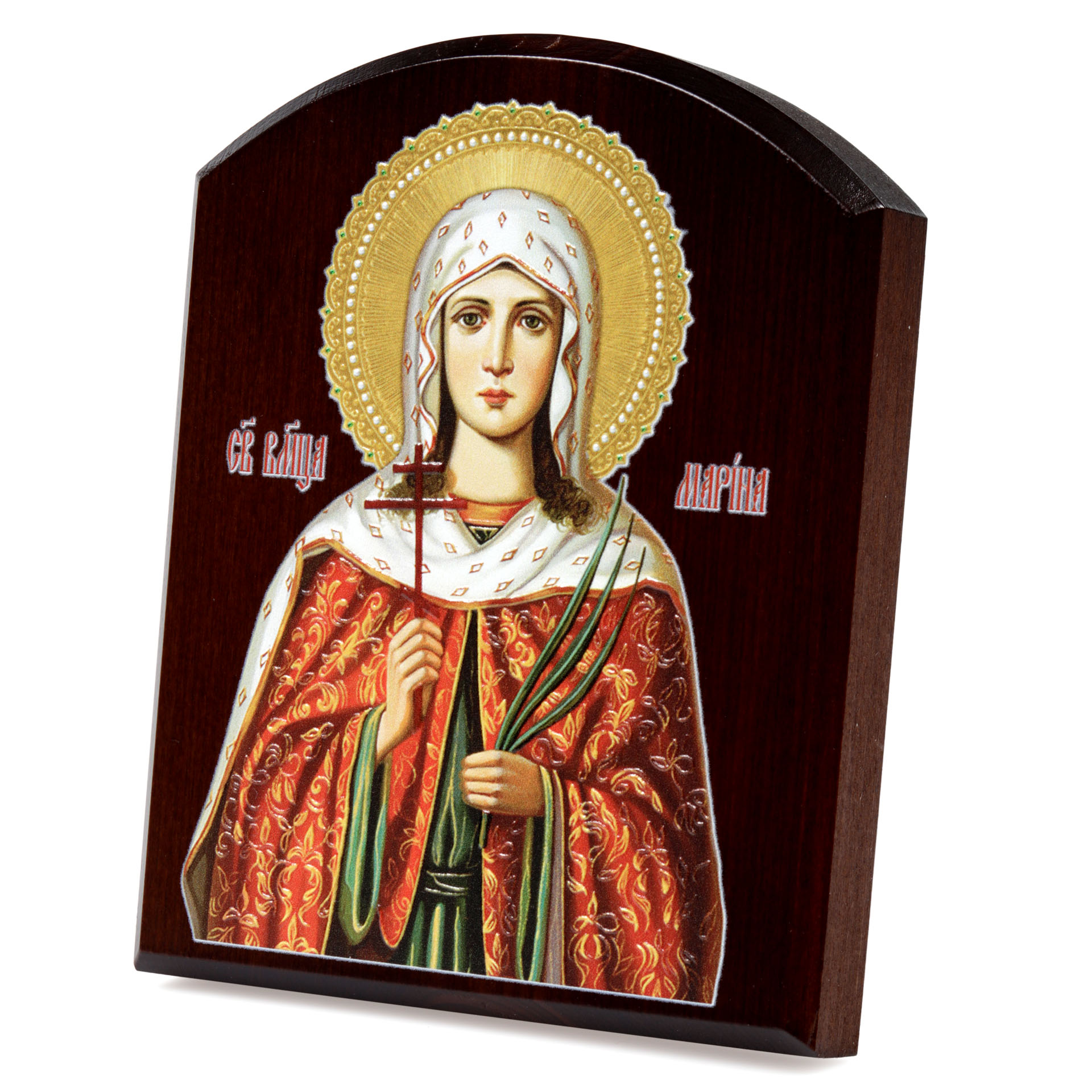 Икона на доске 10х12 объёмная печать, арочная, лак Марина