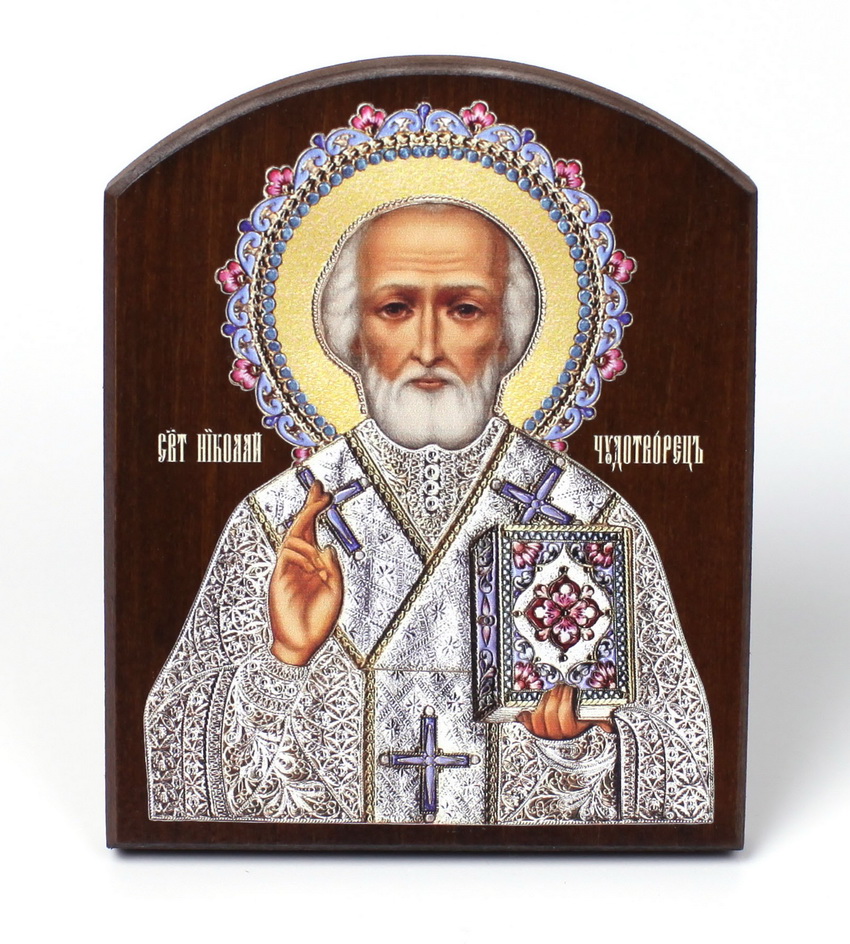 Икона на доске 10х12 объёмная печать, арочная, лак Николай Чудотворец