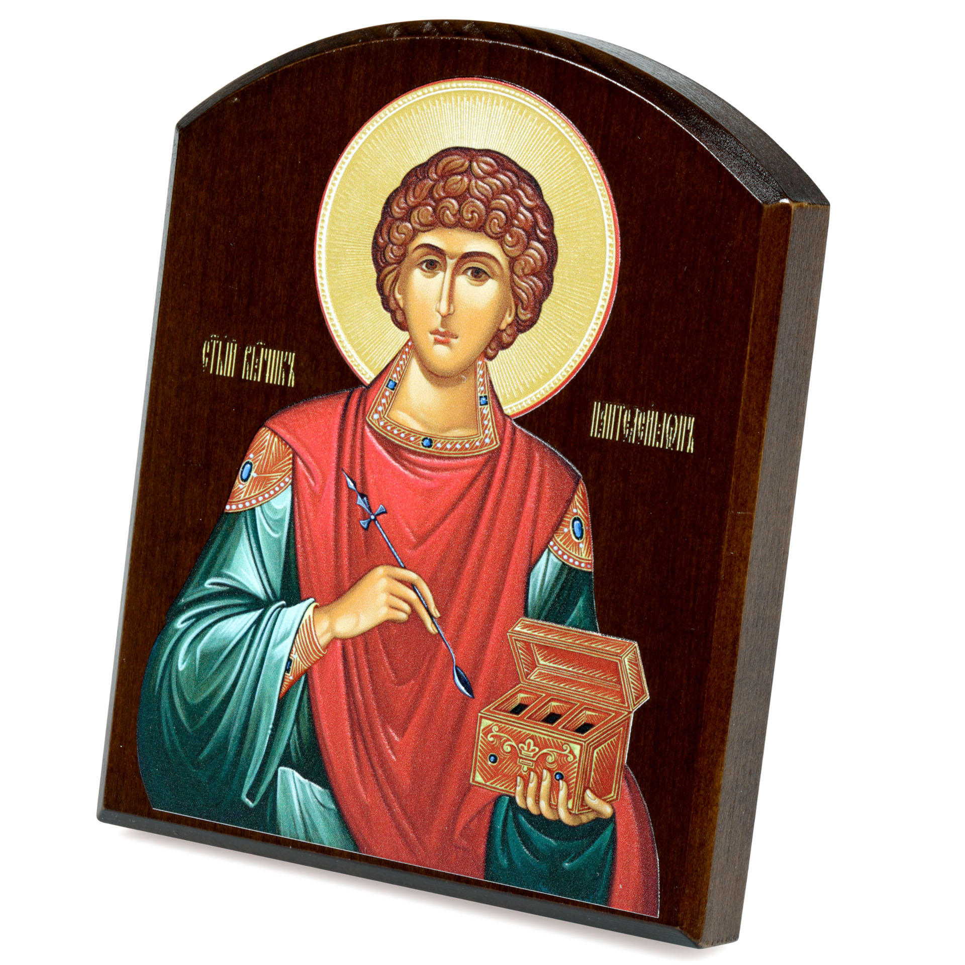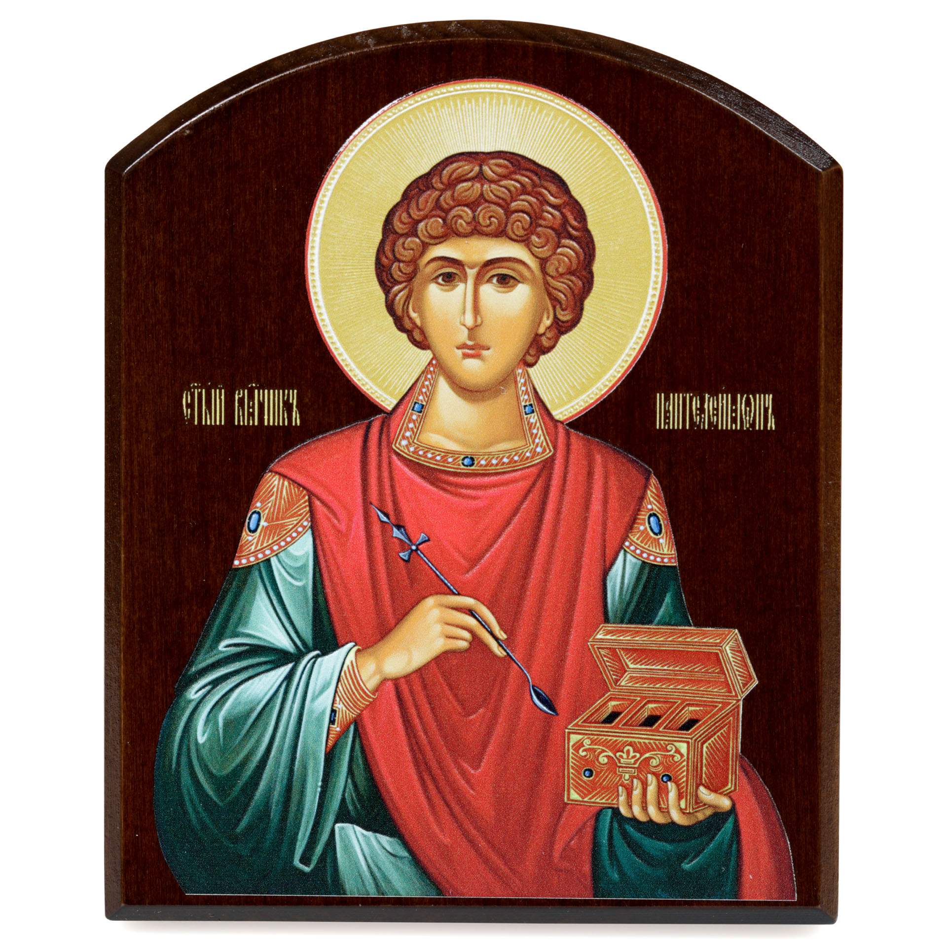 Икона на доске 10х12 объёмная печать, арочная, лак Пантелеимон,