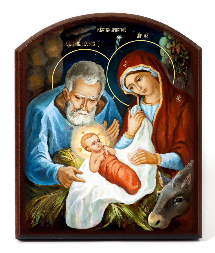 Икона на доске 10х12 объёмная печать, арочная, лак Рождество Христово