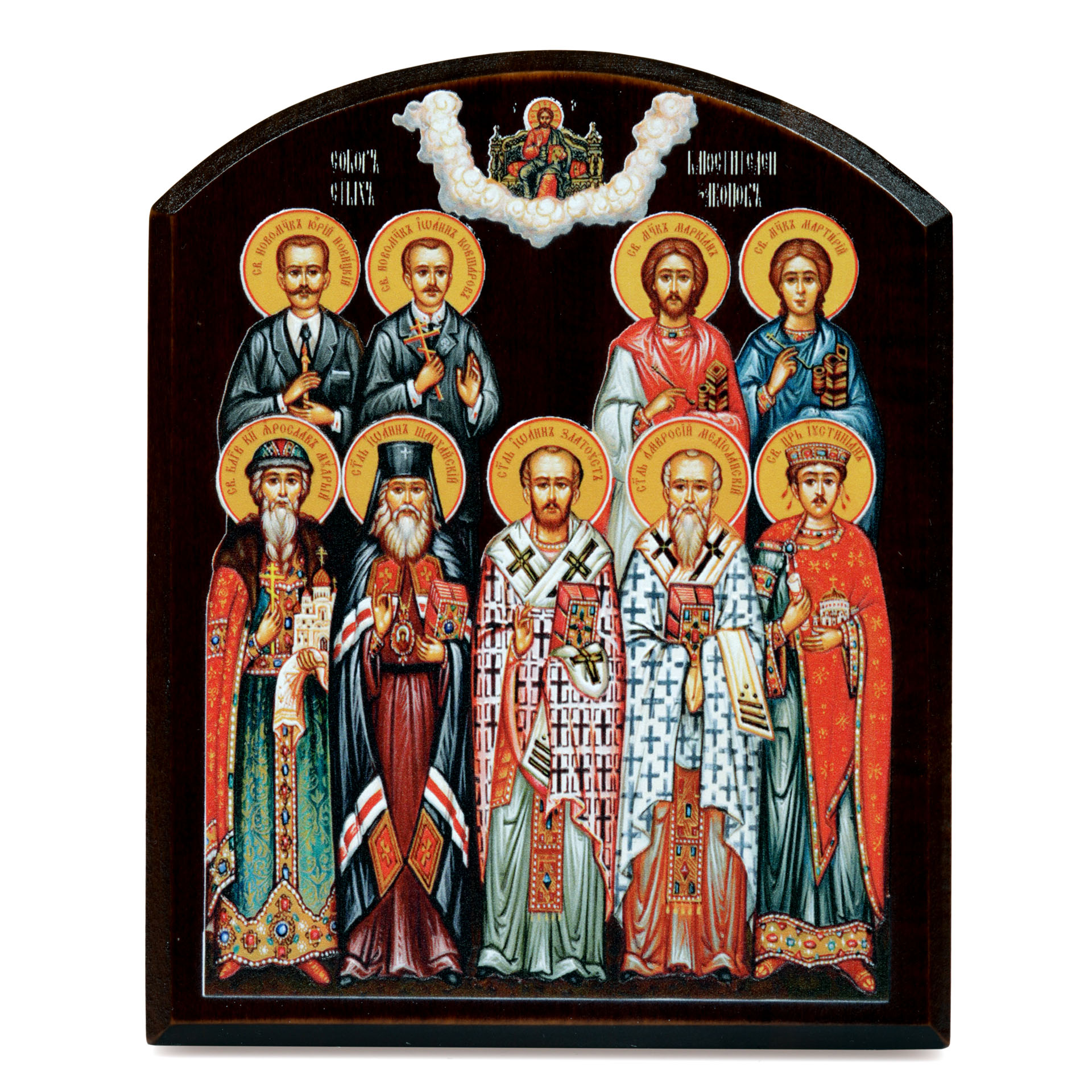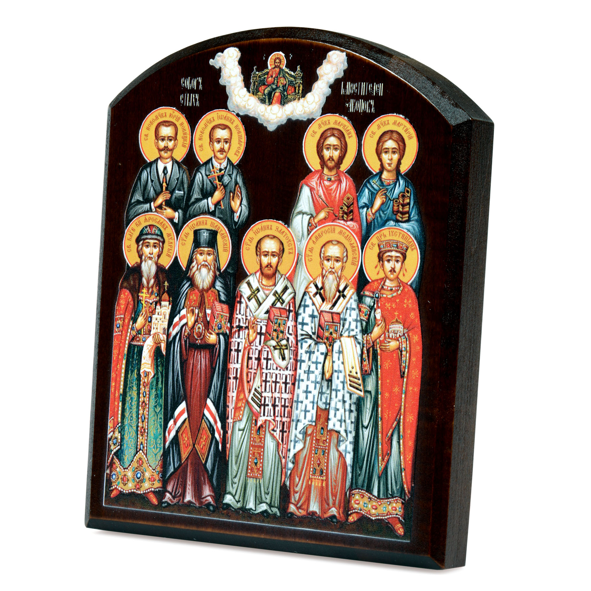 Икона на доске 10х12 объёмная печать, арочная, лак Собор святых блюстителей законов
