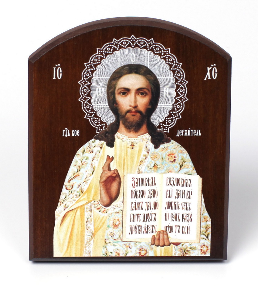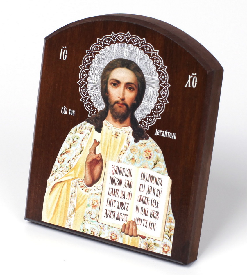 Икона на доске 10х12 объёмная печать, арочная, лак Спаситель