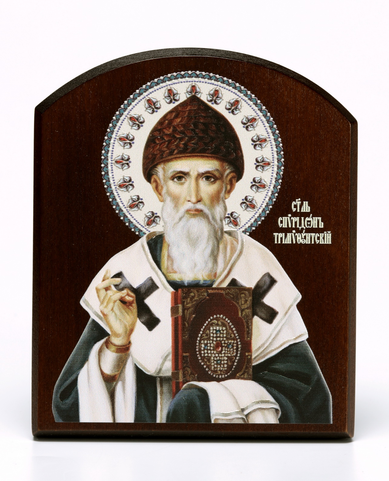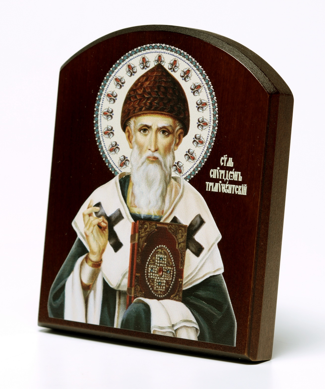 Икона на доске 10х12 объёмная печать, арочная, лак Спиридон Тримифунтский 2