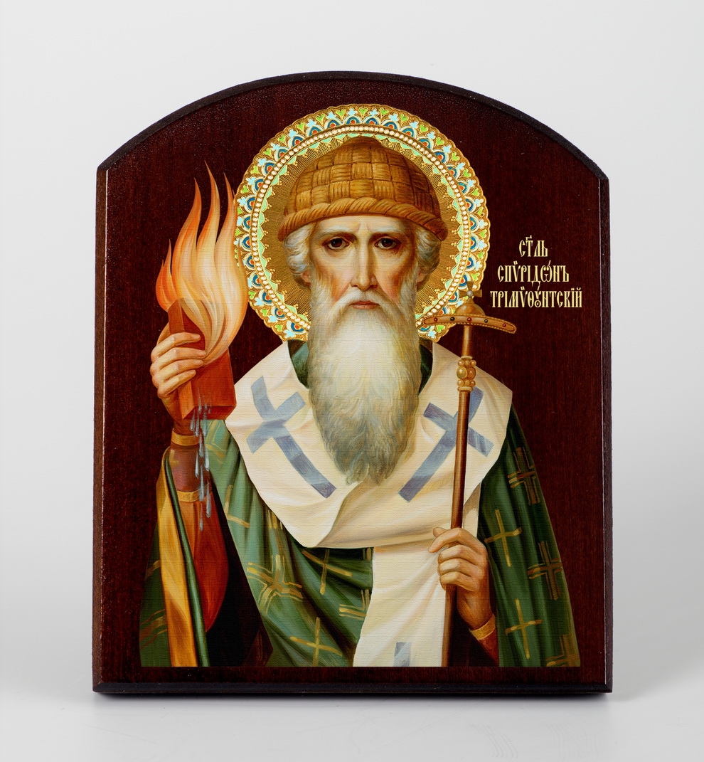 Икона на доске 10х12 объёмная печать, арочная, лак Спиридон Тримифунтский