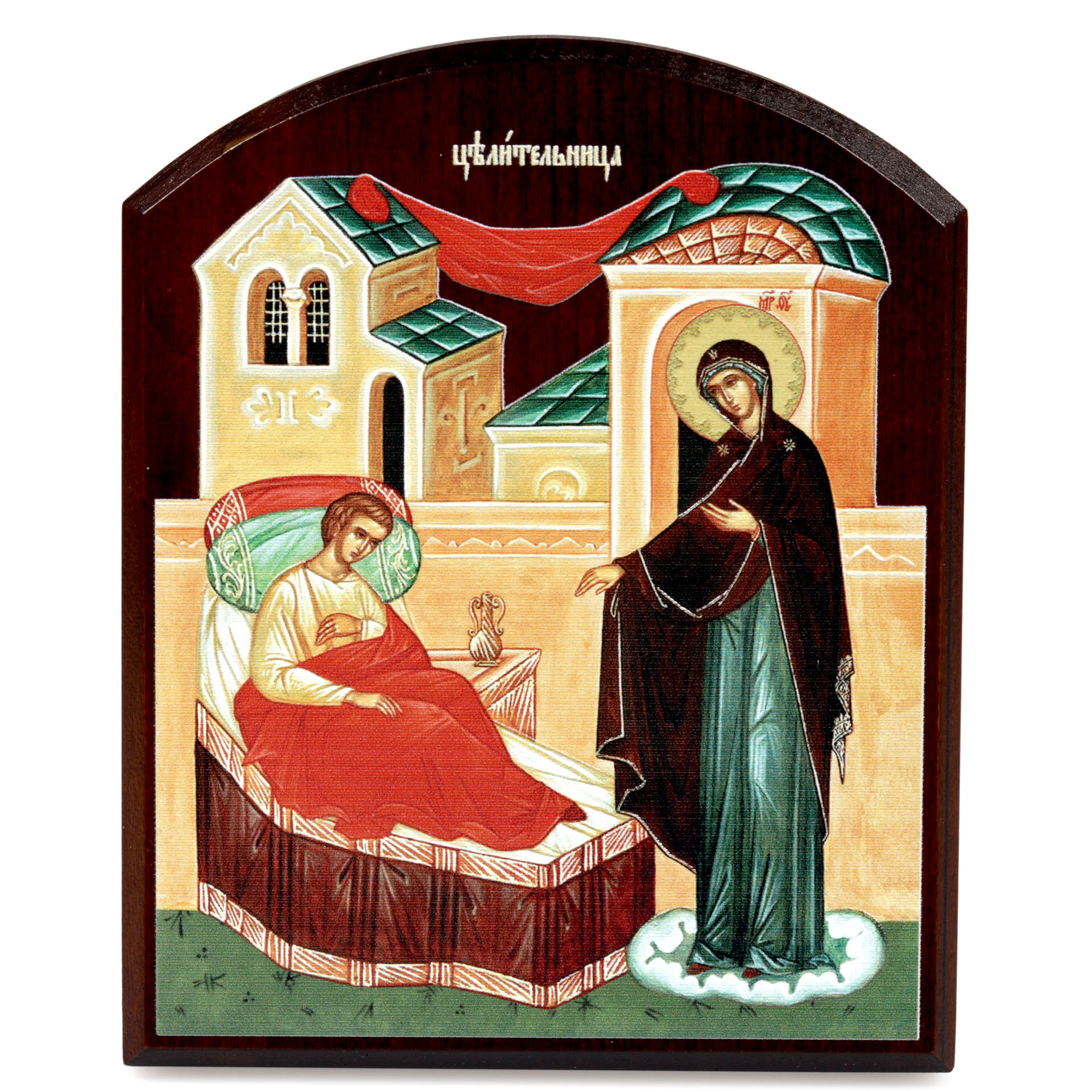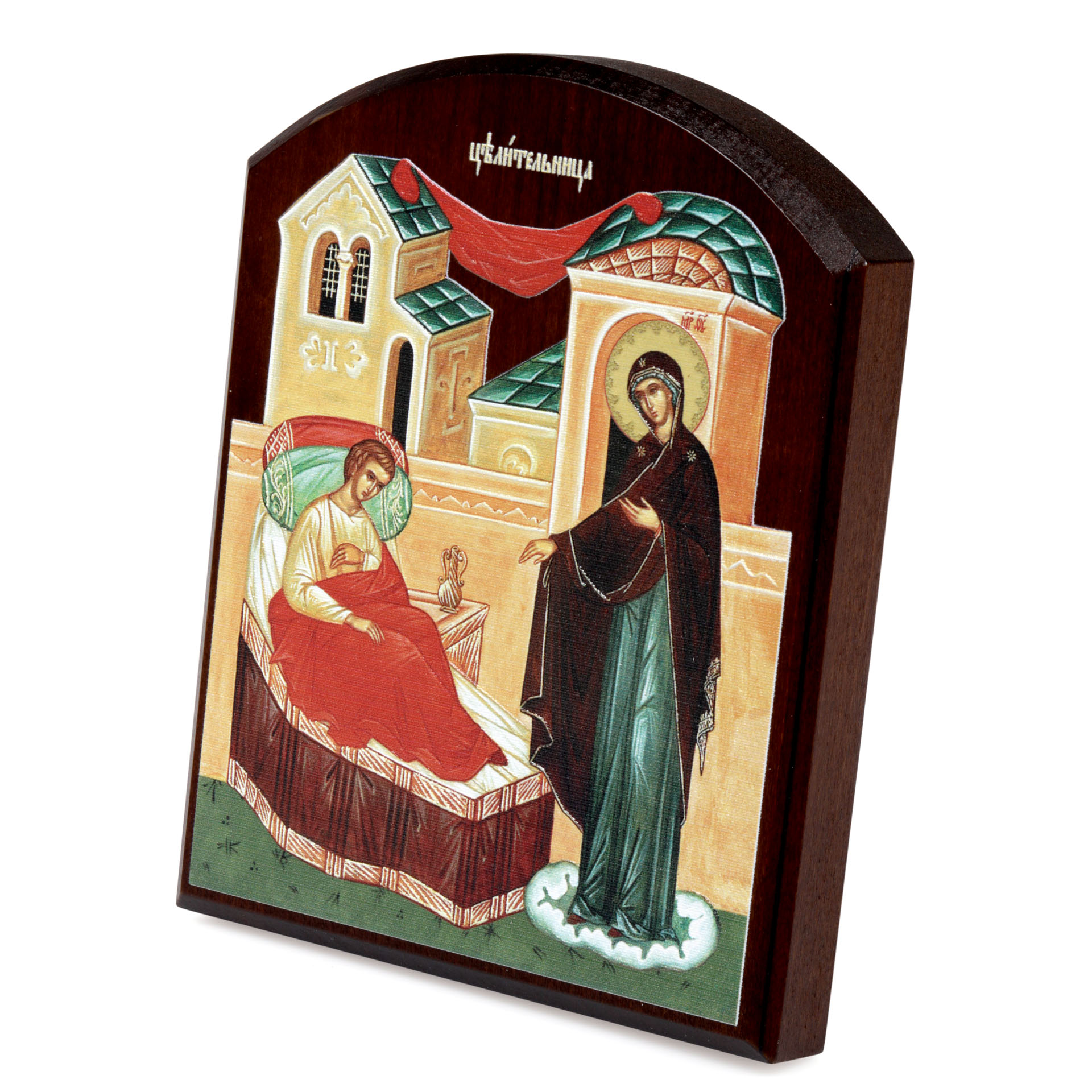 Икона на доске 10х12 объёмная печать, арочная, лак Целительница 2