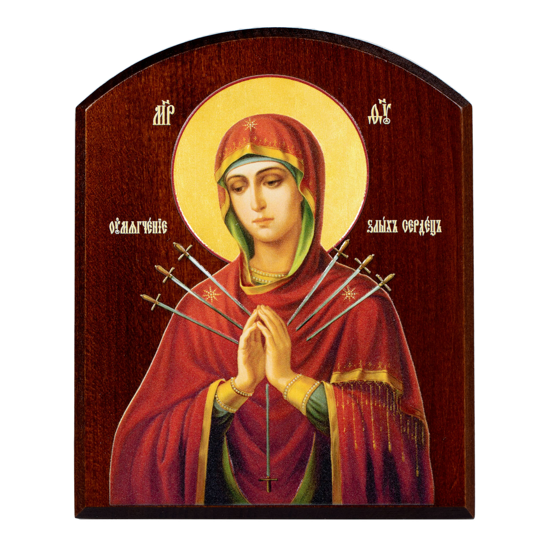 Икона на доске 10х12 объёмная печать, арочная, лак Умягчение злых сердец