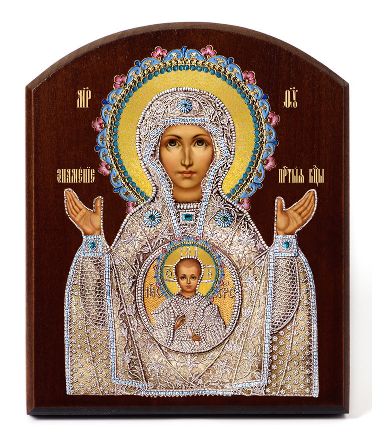 Икона на доске 10х12 объёмная печать, арочная, лак Знамение