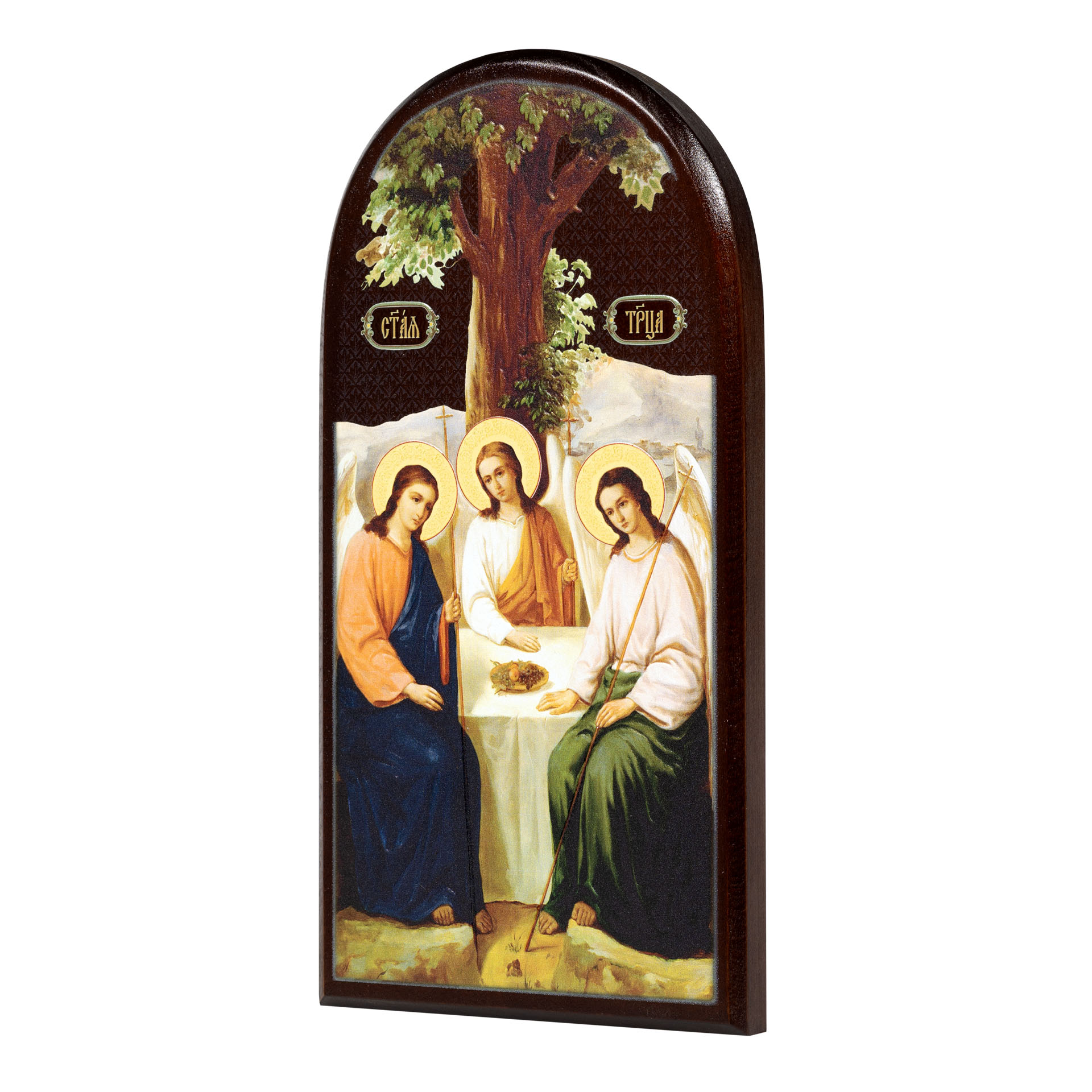 Икона на доске 11х22 объёмная печать, арочная, лак Троица 1