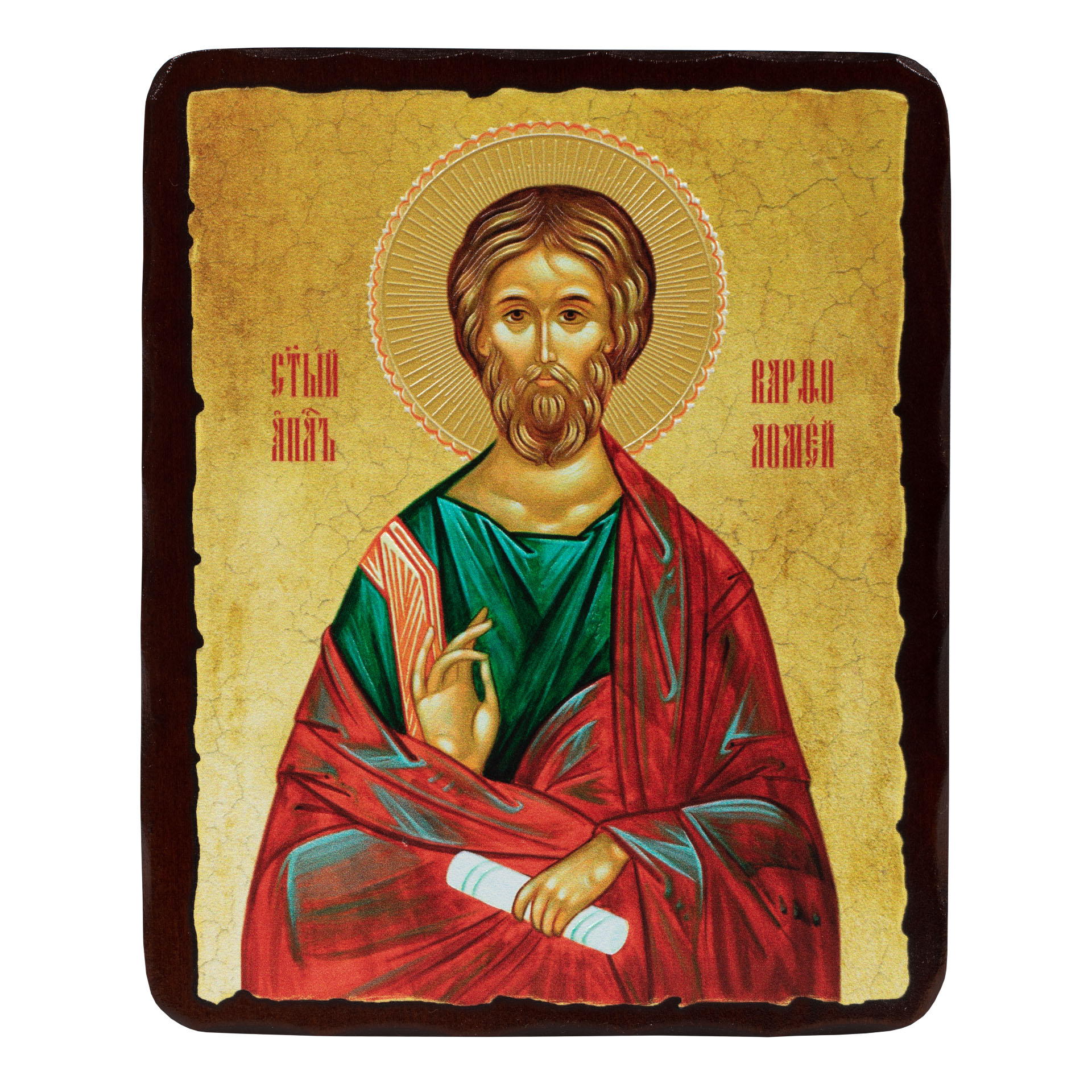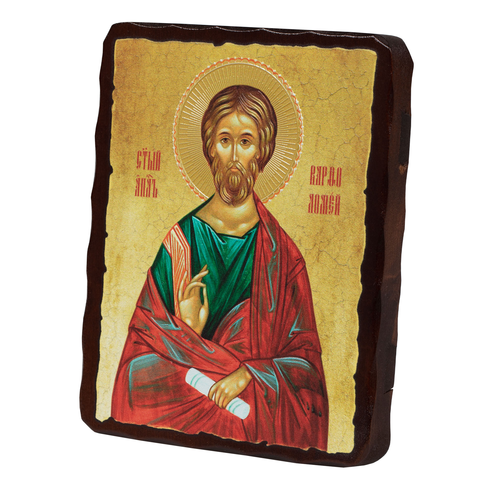 Икона на доске 12,5х16,5 объёмная печать, лак Варфоломей
