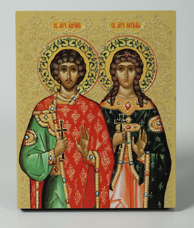 Икона на доске 13х15 объёмная печать, лак Адриан и Наталья