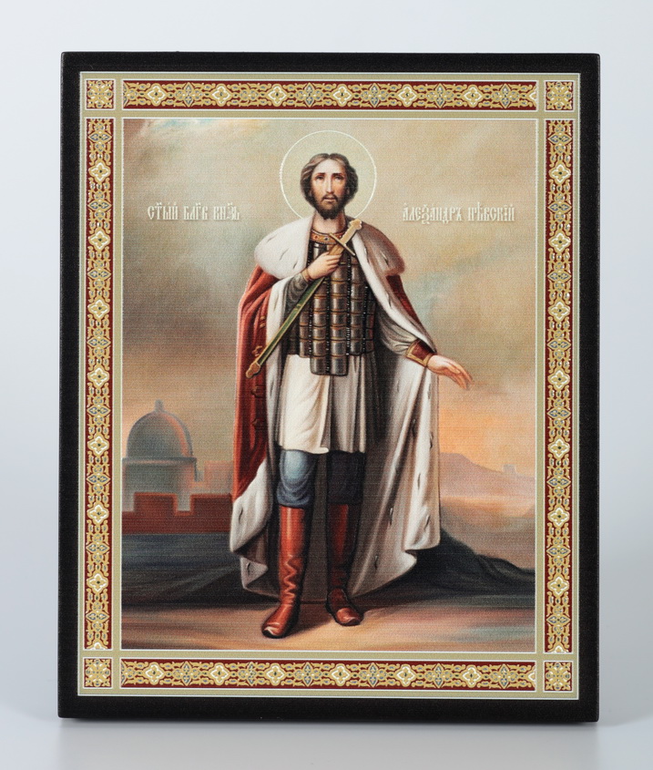 Икона на доске 13х15 объёмная печать, лак Александр Невский 1