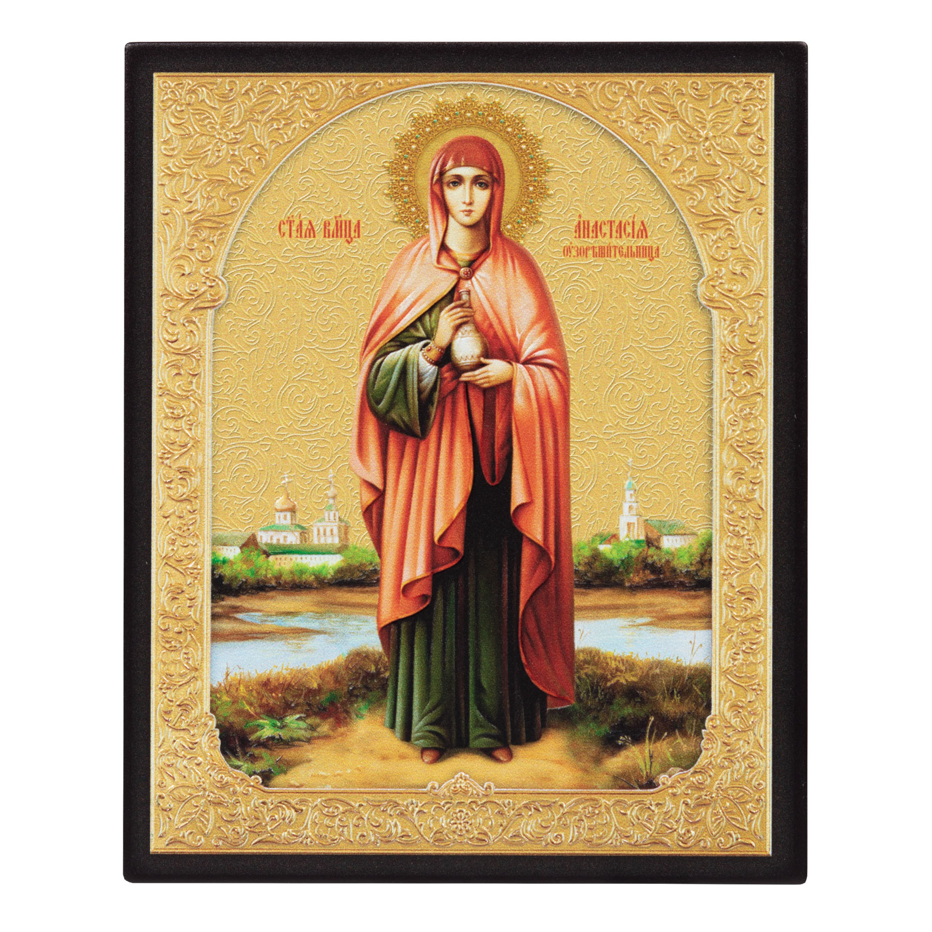 Икона на доске 13х15 объёмная печать, лак Анастасия Узорешительница 2