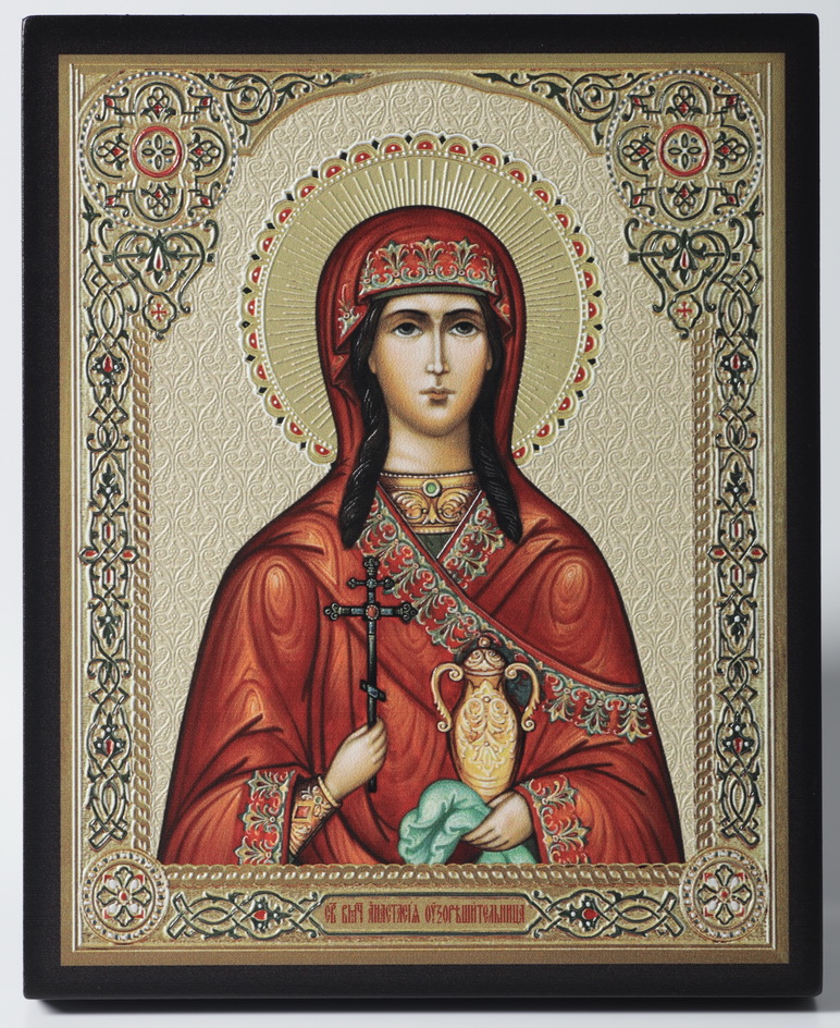 Икона на доске 13х15 объёмная печать, лак Анастасия Узорешительница