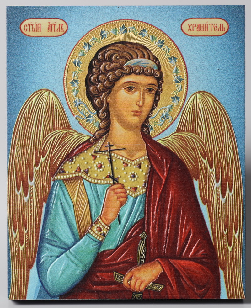 Икона на доске 13х15 объёмная печать, лак Ангел-Хранитель поясной 2