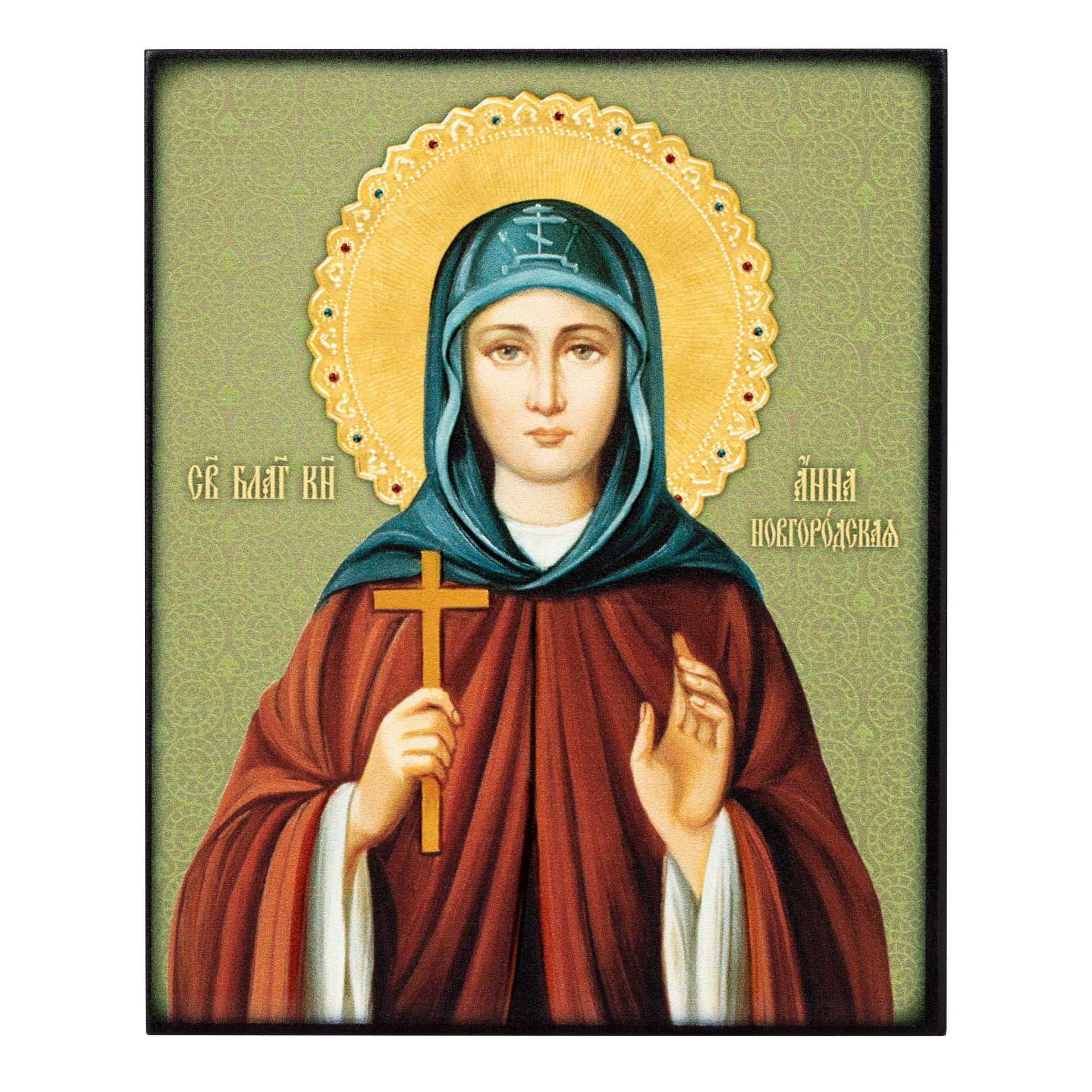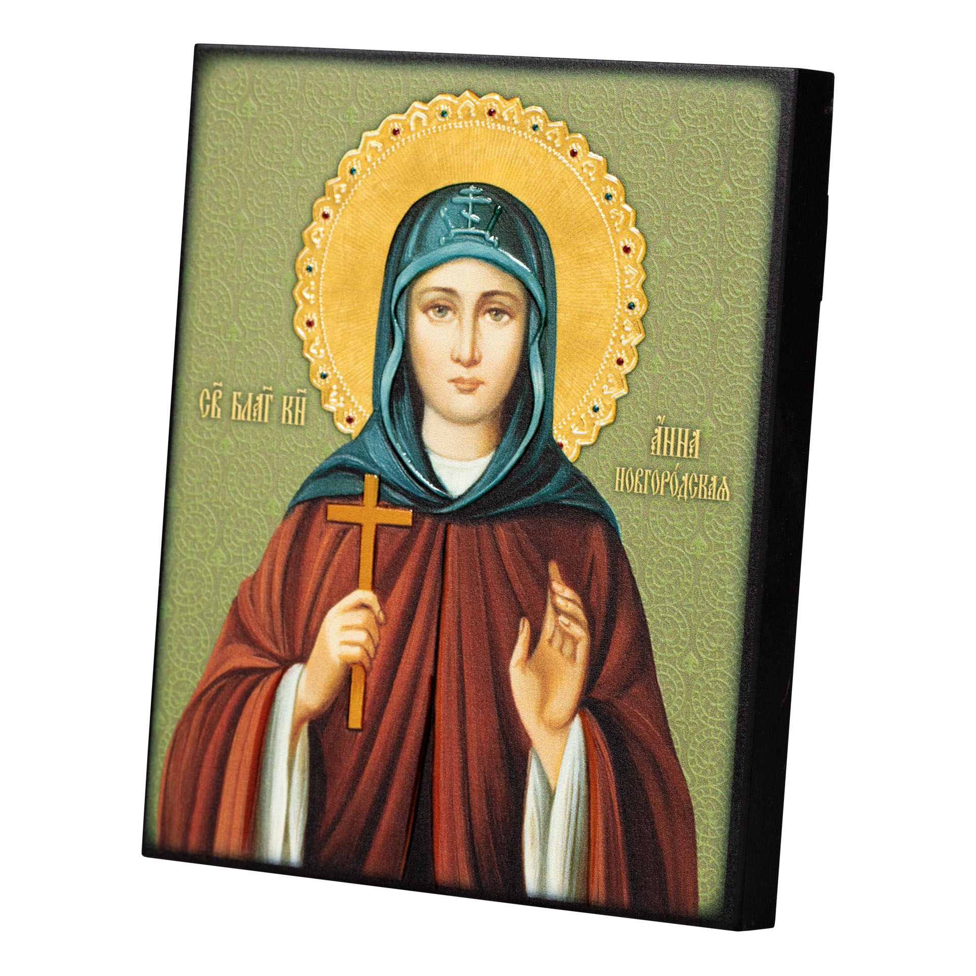 Икона на доске 13х15 объёмная печать, лак Анна Новгородская