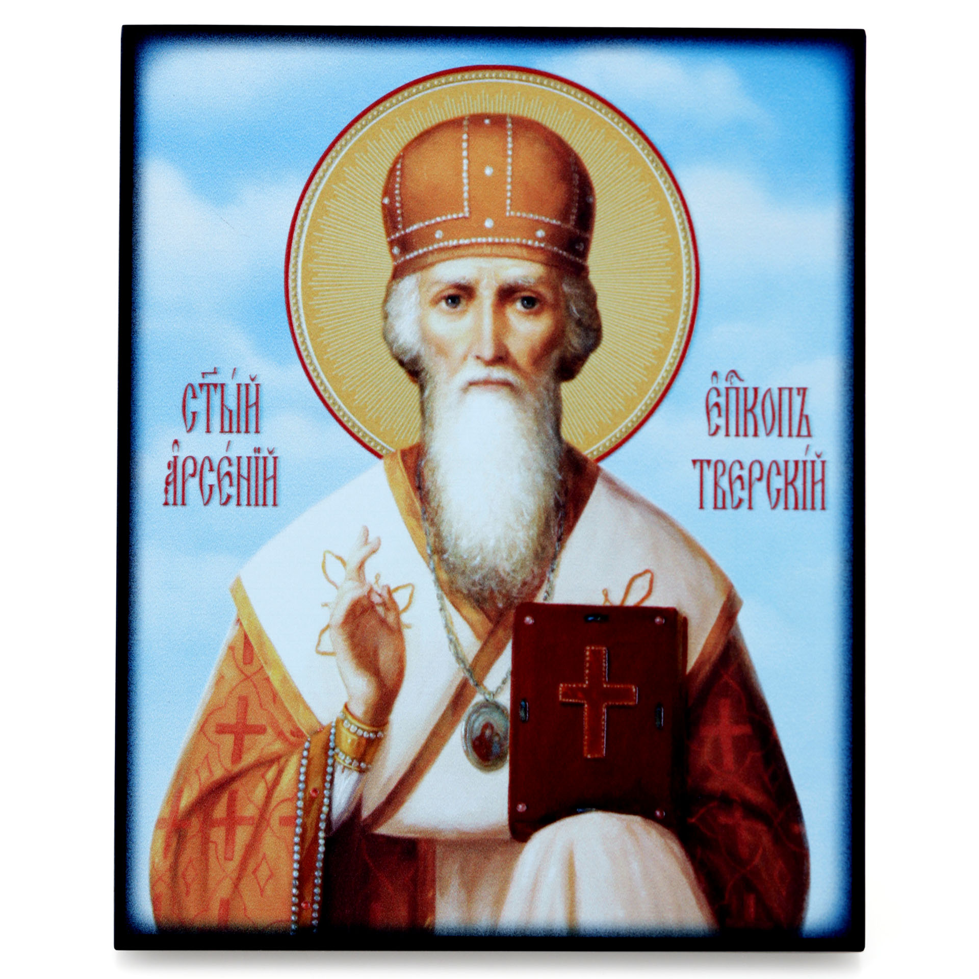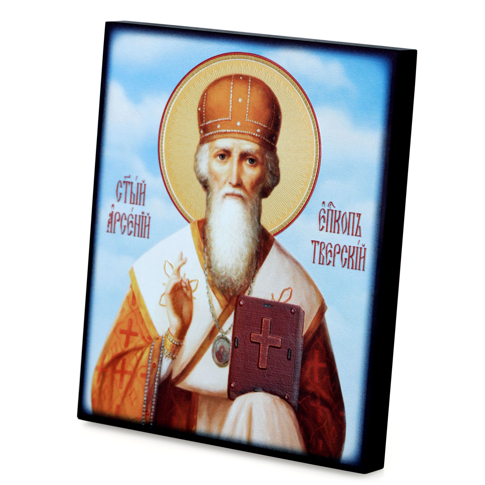 Икона на доске 13х15 объёмная печать, лак Арсений Тверской,