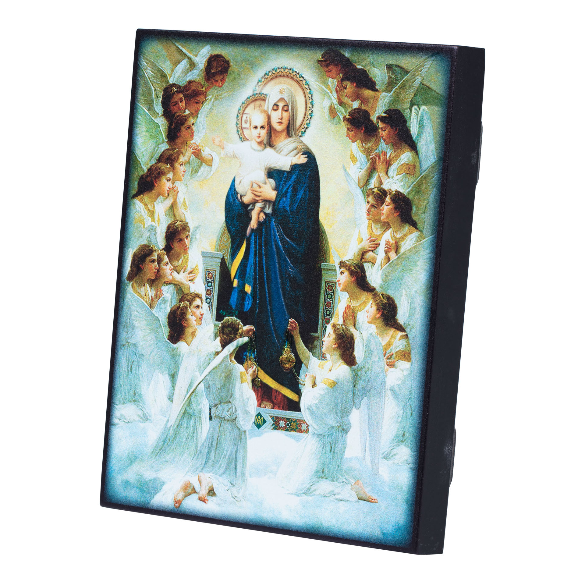 Икона на доске 13х15 объёмная печать, лак Богородица с ангелами