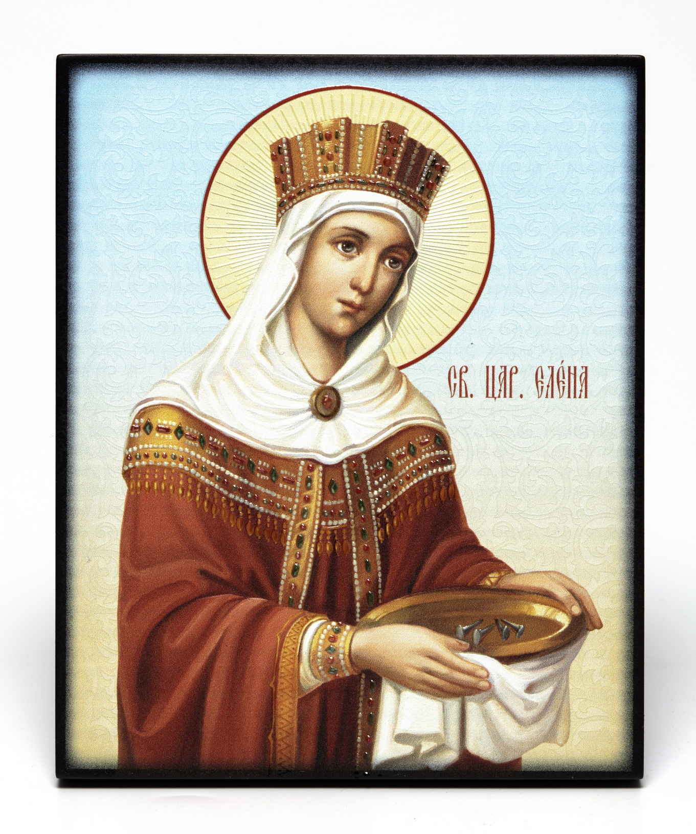 Икона на доске 13х15 объёмная печать, лак Елена 3