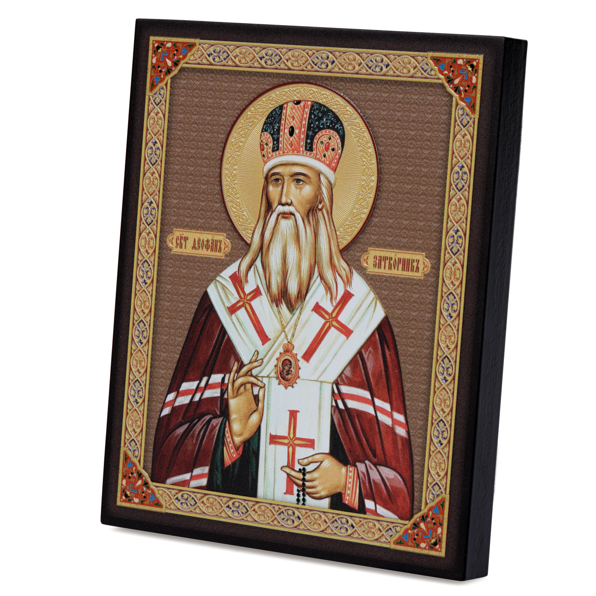 Икона на доске 13х15 объёмная печать, лак Феофан Затворник 2