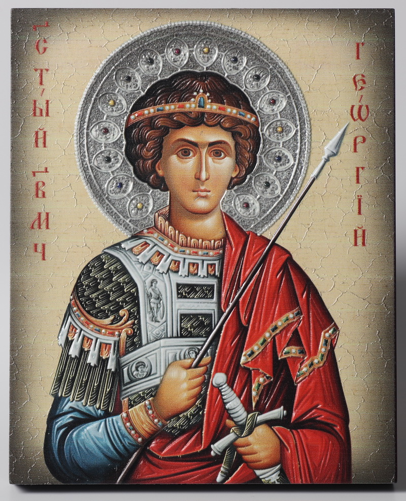 Икона на доске 13х15 объёмная печать, лак Георгий Победоносец 1