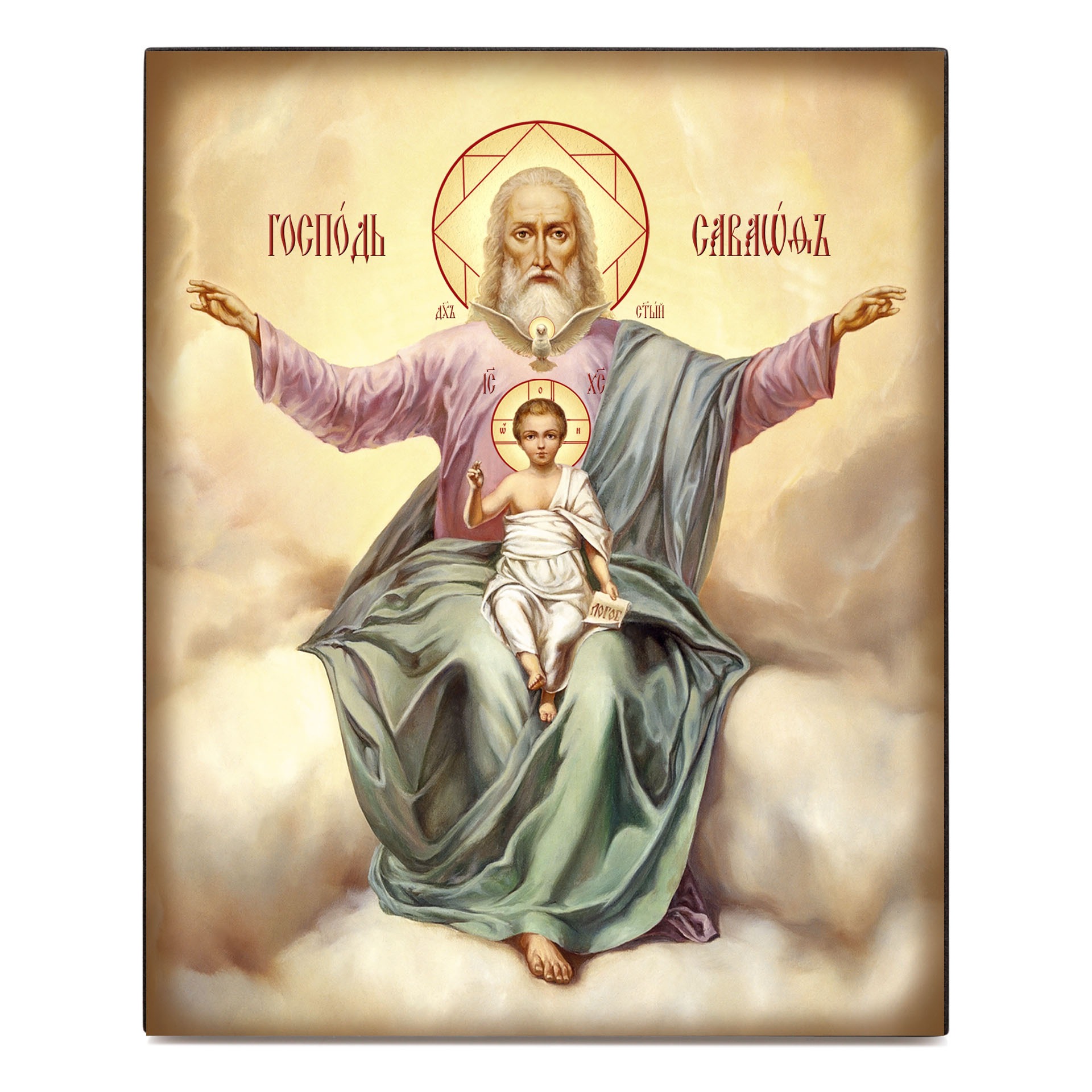 Икона на доске 13х15 объёмная печать, лак Господь Саваоф 2