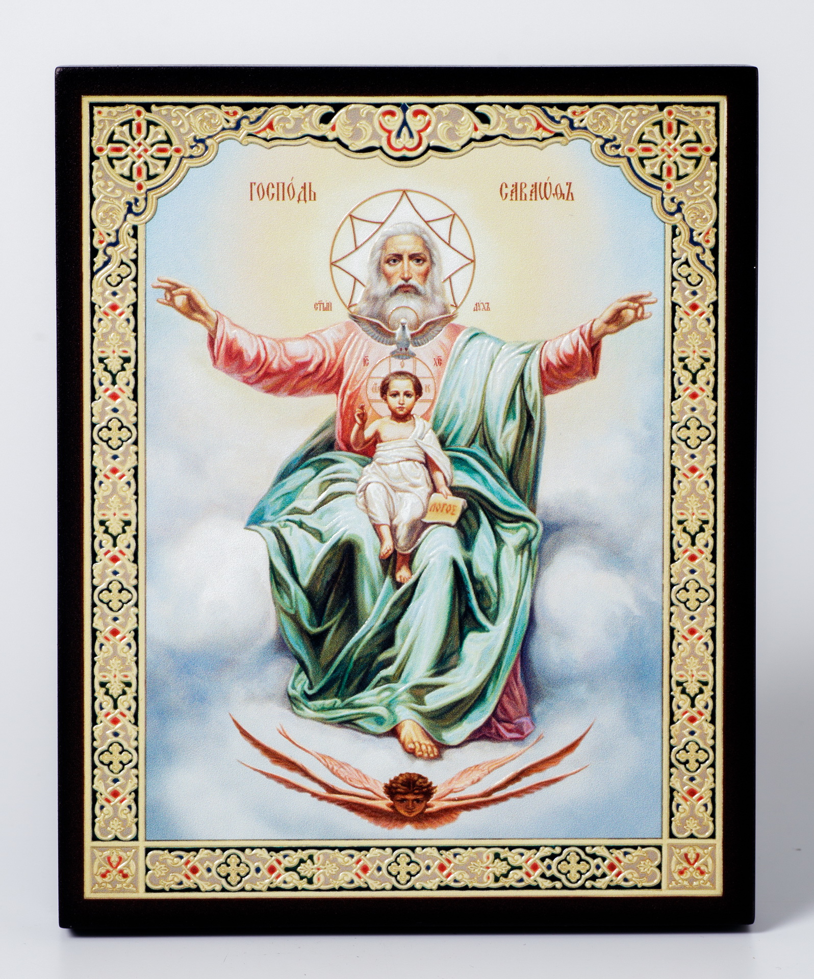Икона на доске 13х15 объёмная печать, лак Господь Саваоф,