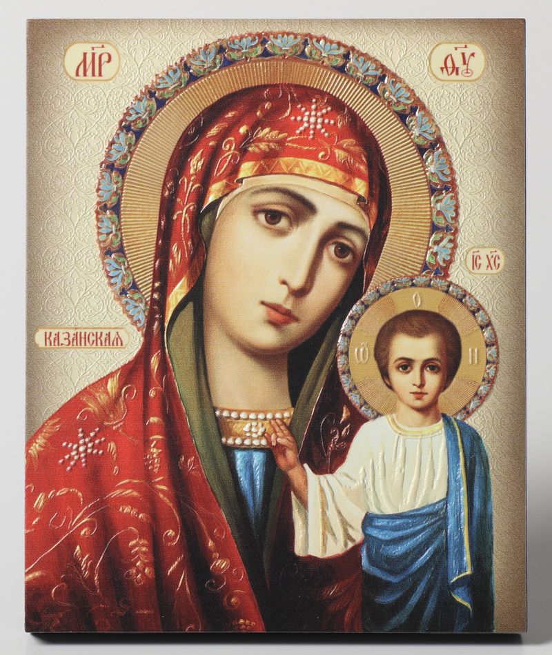 Икона на доске 13х15 объёмная печать, лак Казанская БМ 1