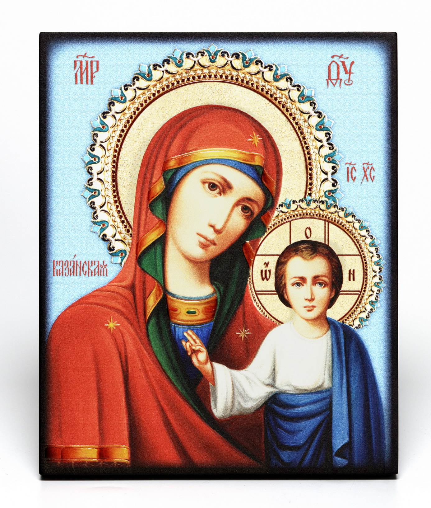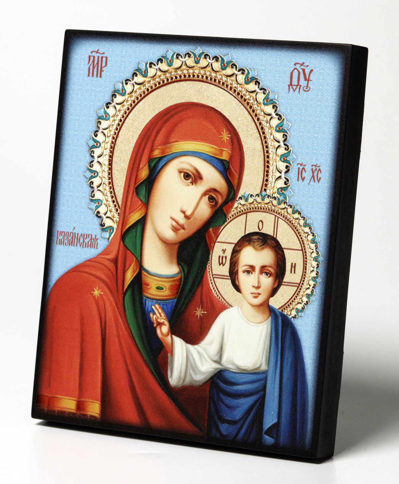 Икона на доске 13х15 объёмная печать, лак Казанская БМ 6