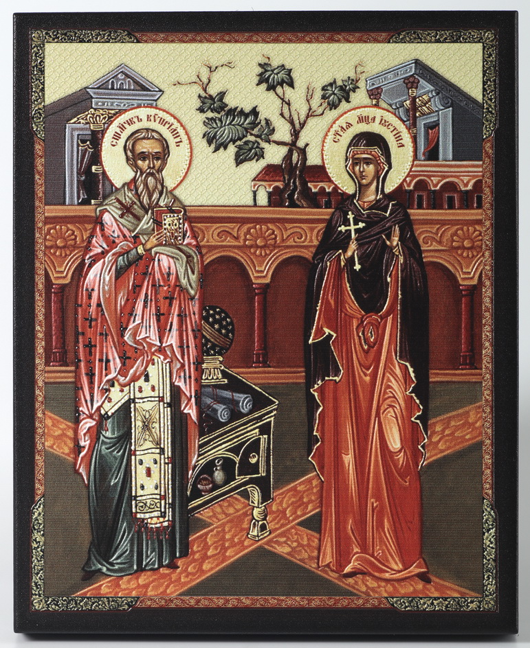 Икона на доске 13х15 объёмная печать, лак Киприан и Иустина