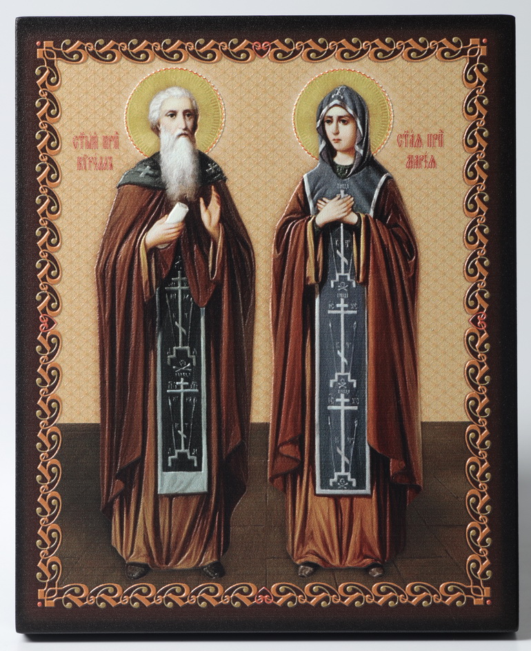 Икона на доске 13х15 объёмная печать, лак Кирилл и Мария 1