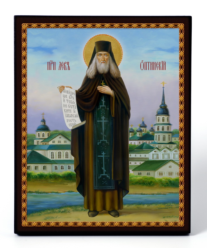 Икона на доске 13х15 объёмная печать, лак Лев Оптинский