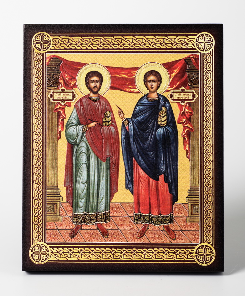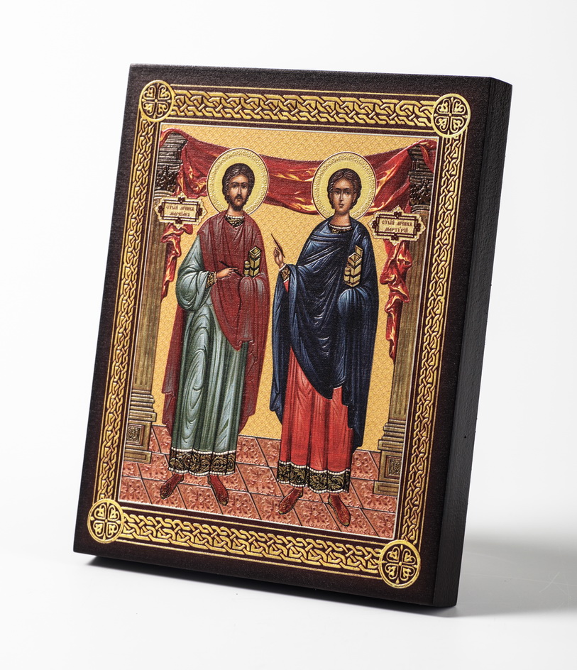 Икона на доске 13х15 объёмная печать, лак Маркиан и Мартирий